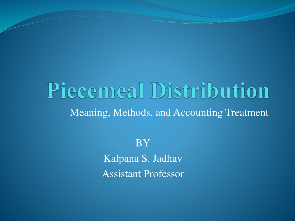 Introduction Definition of piecemeal distribution: It is a method of distributing cash gradually to partners as and when assets are realized in case of dissolution of a firm. Explanation of why piecemeal distribution is required.