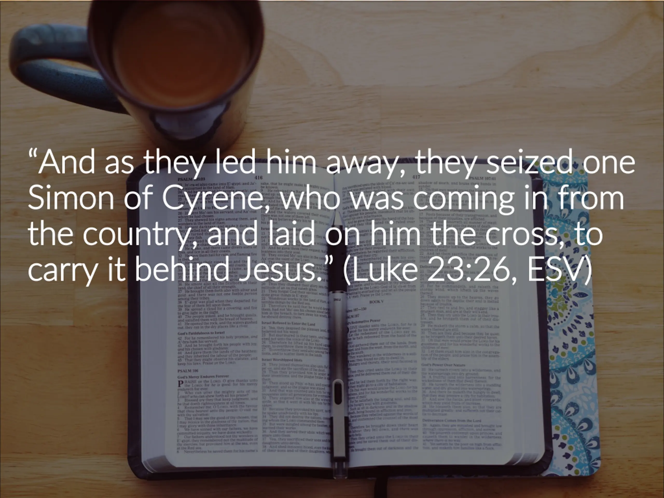 And as they led him away, they seized one And as they led him away, they seized one Simon of Cyrene, who was coming in from Simon of Cyrene, who was coming in from the country, and laid on him the cross, to the country, and laid on him the cross, to carry it behind Jesus. (Luke 23:26, ESV) carry it behind Jesus. (Luke 23:26, ESV)