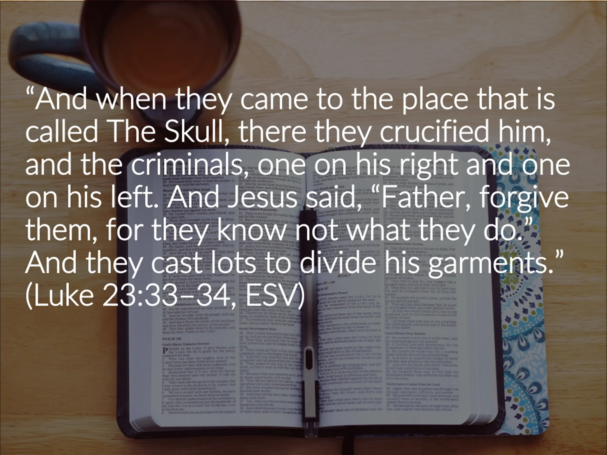And when they came to the place that is And when they came to the place that is called The Skull, there they crucified him, called The Skull, there they crucified him, and the criminals, one on his right and one and the criminals, one on his right and one on his left. And Jesus said, Father, forgive on his left. And Jesus said, Father, forgive them, for they know not what they do. them, for they know not what they do. And they cast lots to divide his garments. And they cast lots to divide his garments. (Luke 23:33 (Luke 23:33 34, ESV) 34, ESV)