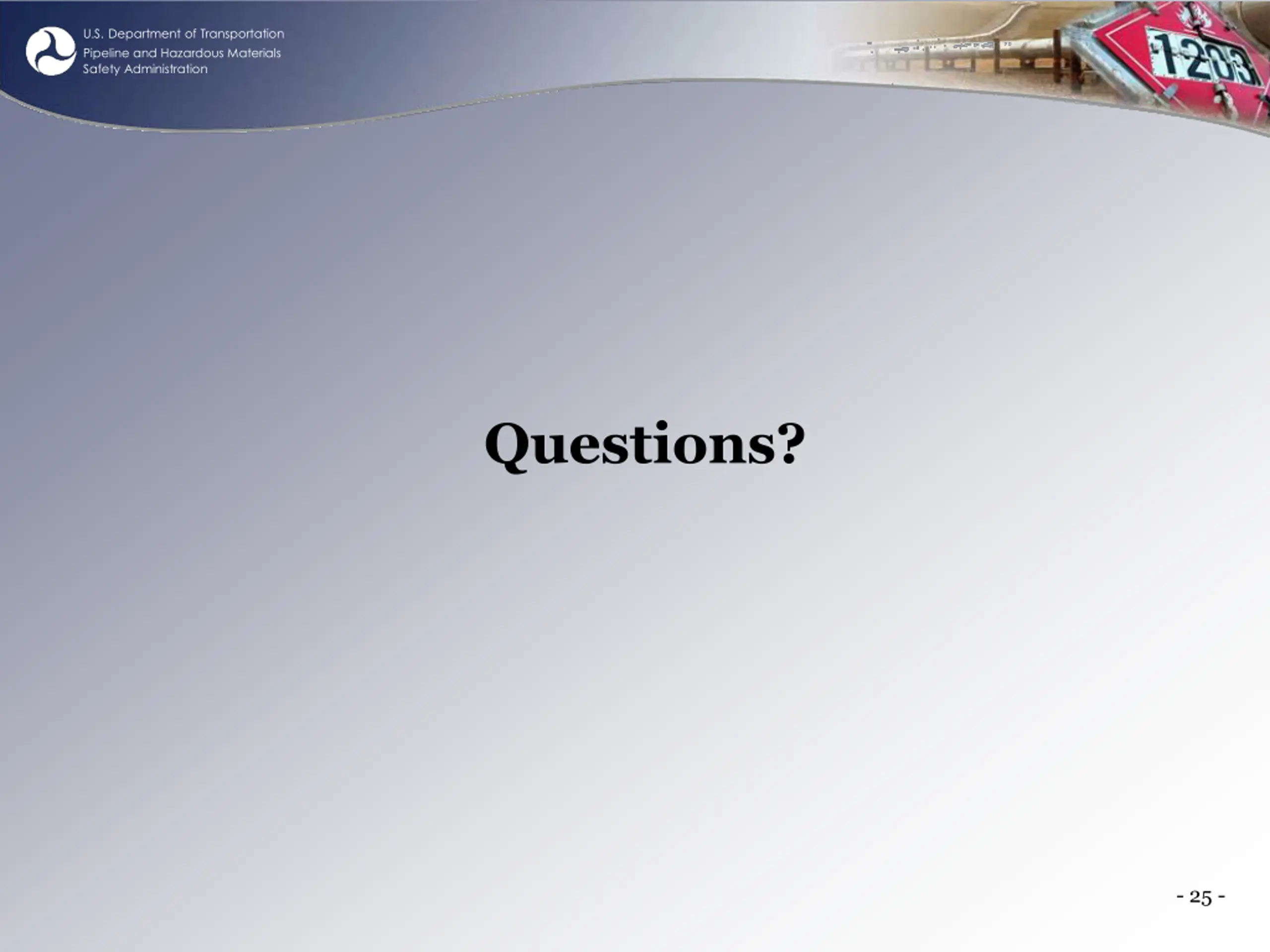 U.S. Department of Transportation Pipeline and Hazardous Materials Safety Administration Questions? - 25 -