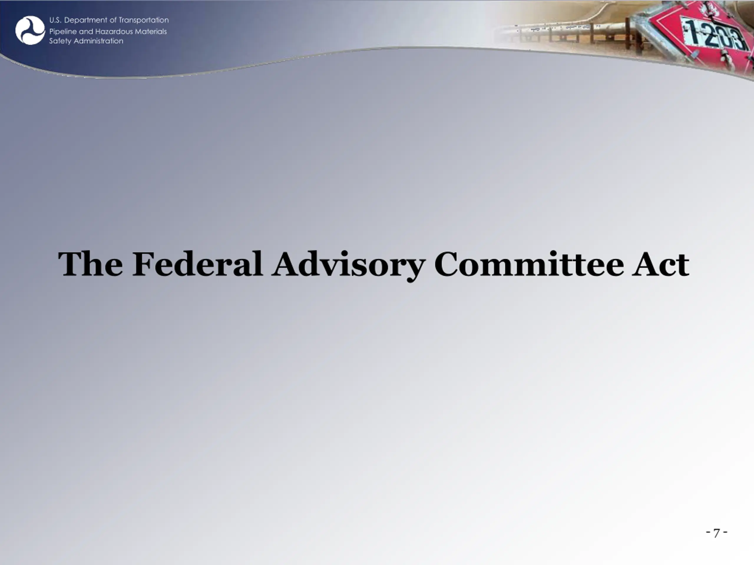 U.S. Department of Transportation Pipeline and Hazardous Materials Safety Administration The Federal Advisory Committee Act - 7 -