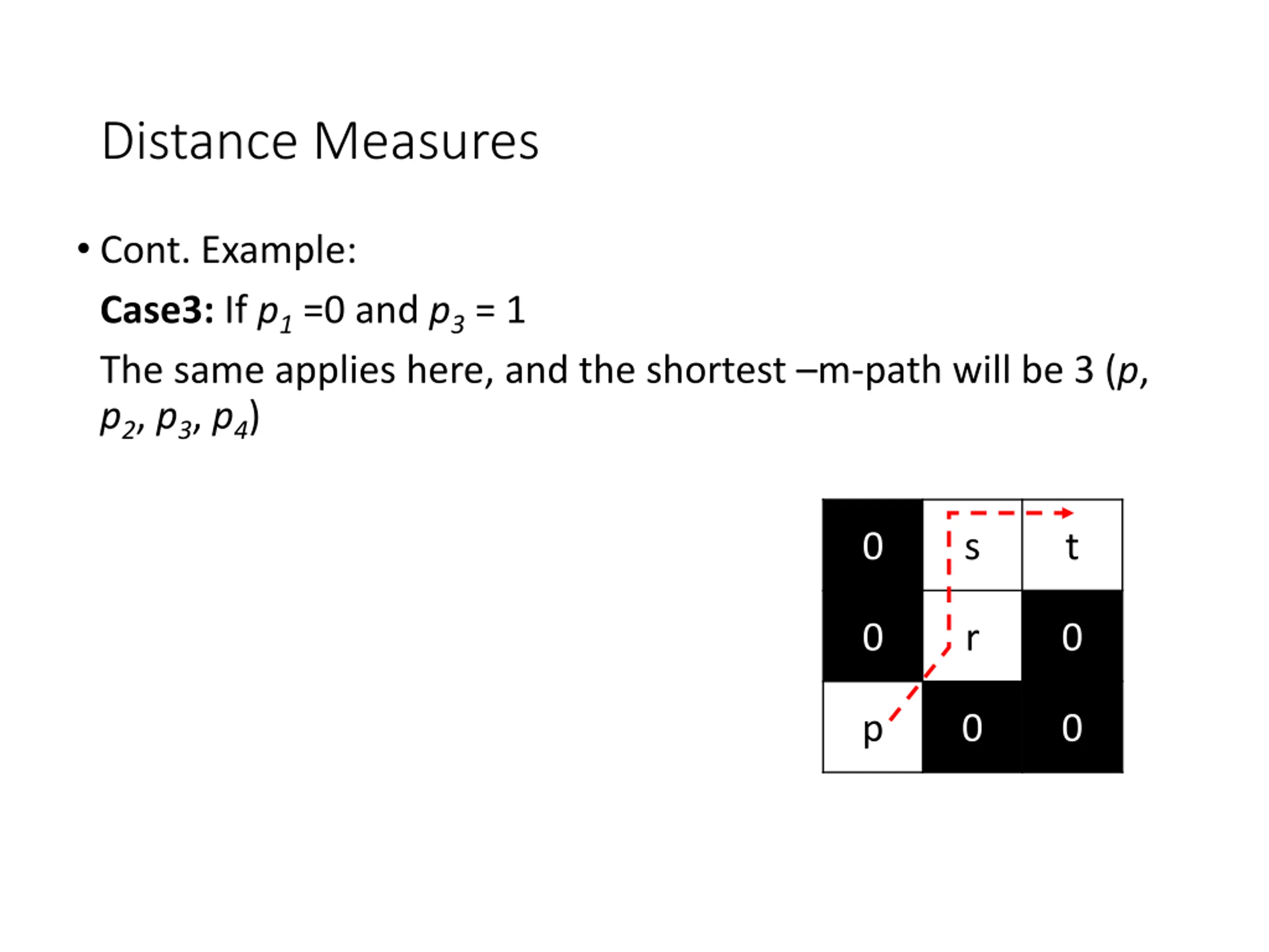 Distance Measures Cont. Example: Case4: If p1 =1 and p3 = 1 The length of the shortest m-path will be 4 (p, p1 , p2, p3, p4) 0 s t q r 0 p 0 0