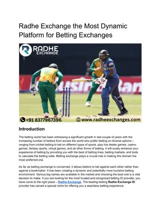 T20 cricket betting ID - On Exchange you can bet on any game you really want to. We moreover give free expert tips and prizes to our ongoing clients. Get your ID now, simply on Radheexch. In addition, visit site here. Radhe Exchange smoothes out betting with understanding compact place of interaction simple. Value steady course, fast bets, and secure trades, going with it a top choice for cricket fans. About Online Cricket ID Provider Is it likely that you are ready to raise your cricket being a fan to a more significant level? Look no further! Introducing Radhe Exchange, your central target for all that cricket betting. At (covered information), we're focused on introducing to you the most thrilling and distinctive betting experience custom fitted unequivocally for cricket fans like you. Why pick Radhe Exchange? This isolates us: Unmatched Variety: Whether you love Test matches, One Day Internationals, T20, or even the fast energy of the T20, we deal with you. Explore an enormous area of betting decisions across various cricket affiliations and contests from around the globe. Cutting edge Advancement: Our establishment is arranged considering client experience. Value steady course, lightning-speedy updates, and secure Radhe Exchange, all promptly accessible. With our regular association point, putting down a bet has never been easier. Ace Encounters: Stay in control with our lord examination and assumptions. Access significant encounters, experiences, and tips from arranged cricket specialists to enlighten your betting decisions and lift your chances of ending up as the winner. Totally protected: Your security is our fundamental concern. Have certainty that your own information and trades are defended by state of the art security endeavors, ensuring a direct betting experience no matter what. every day of the week Help: Have a request or need assistance? Our serious client administration bunch is open relentless to address any concerns and give assistance whenever you need it. Join the countless cricket sweethearts who trust Radhe Exchange for their betting needs. Join today at (covered information) and experience the energy of cricket betting like never before!