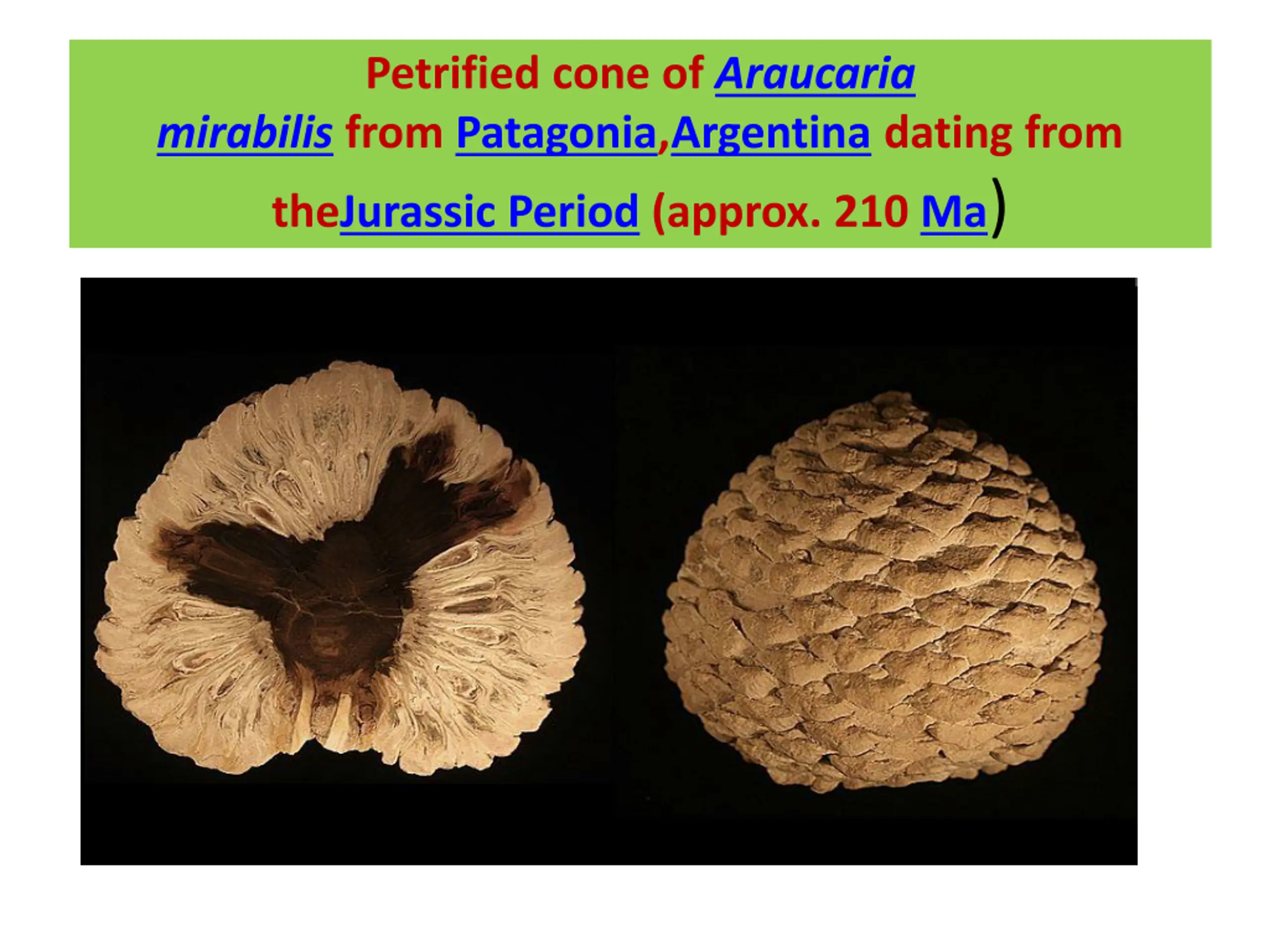 Petrified cone of Araucaria mirabilis from Patagonia,Argentina dating from theJurassic Period (approx. 210 Ma)