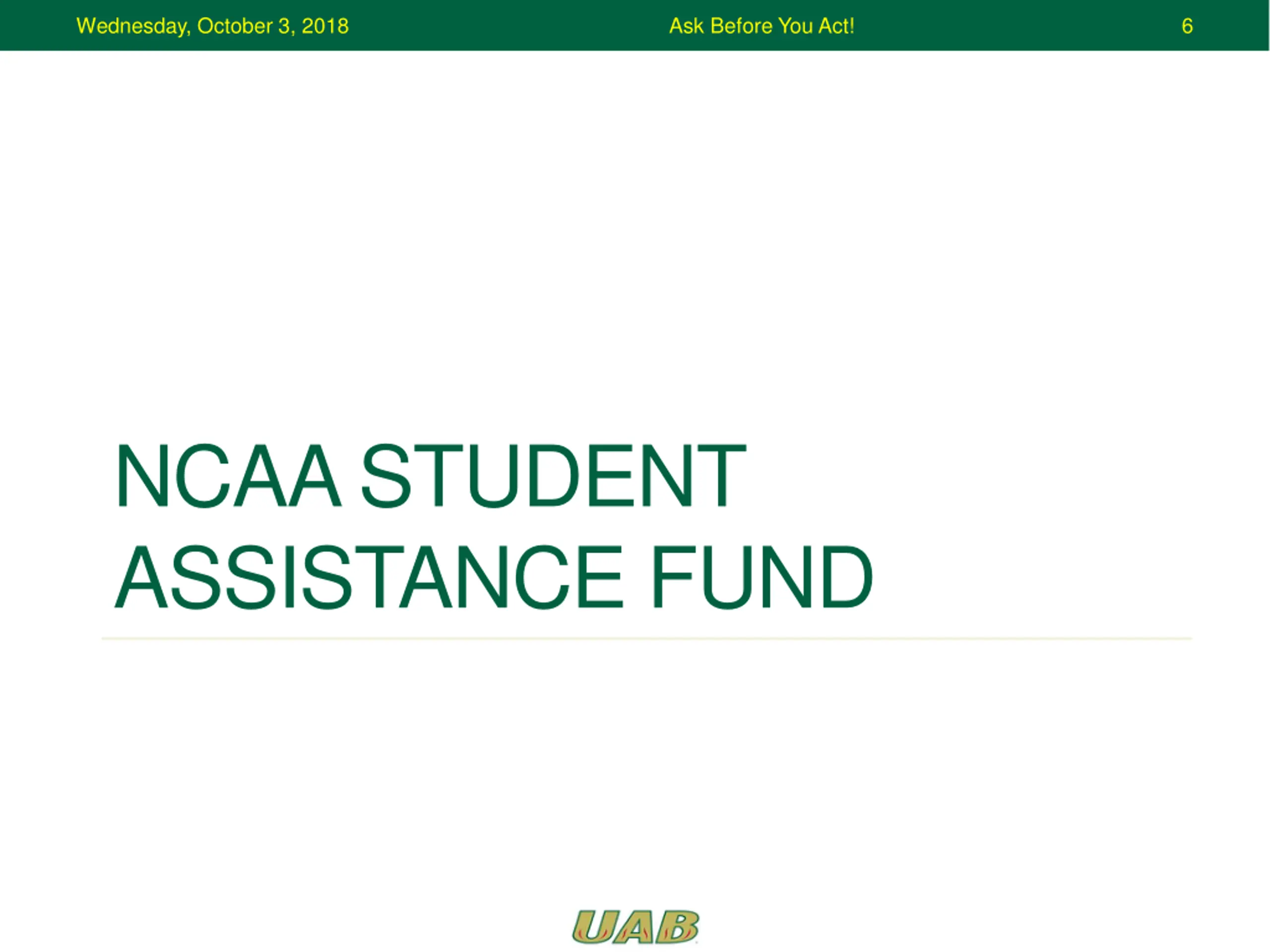 Wednesday, October 3, 2018 Ask Before You Act! 6 NCAA STUDENT ASSISTANCE FUND
