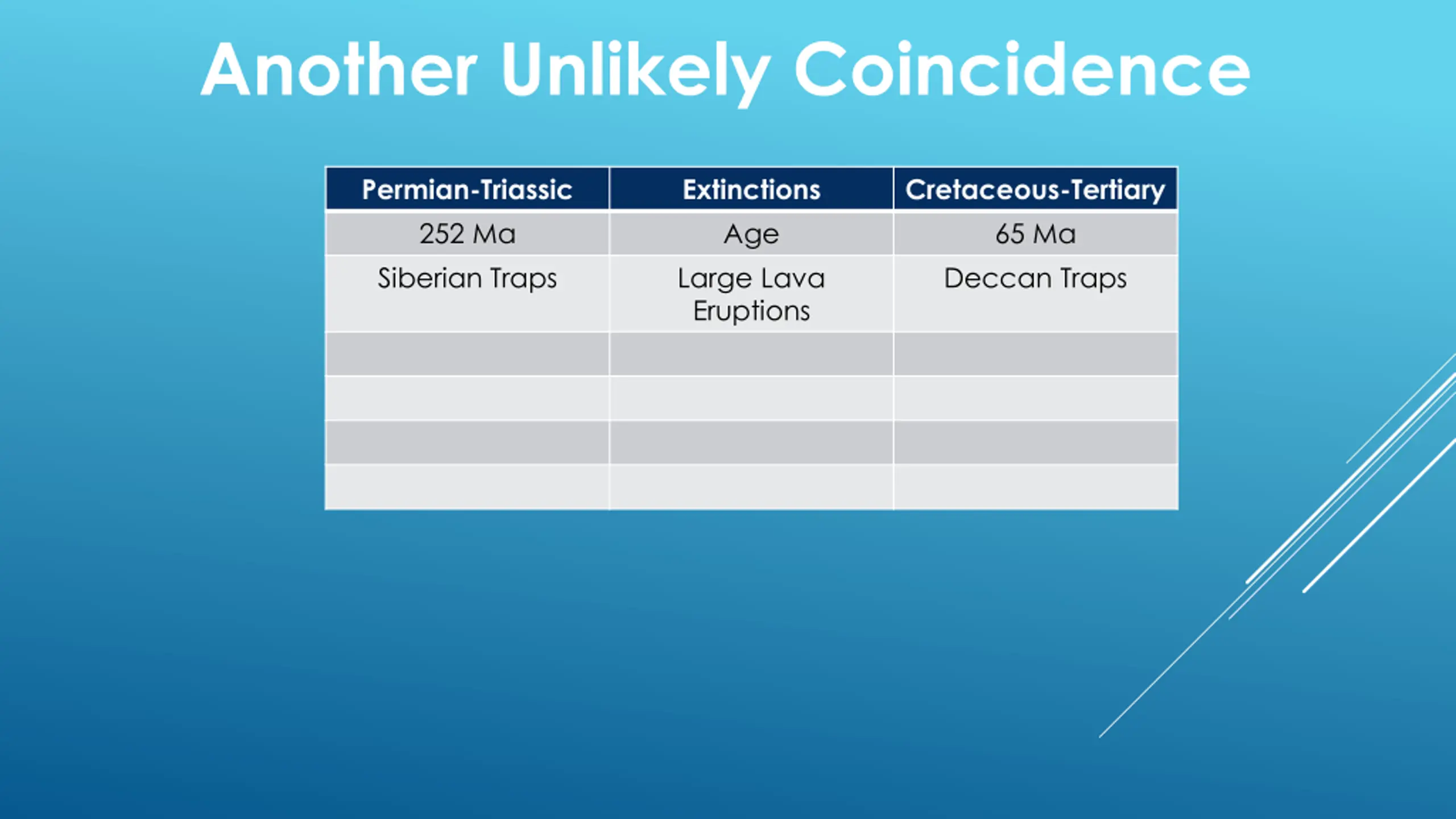 Another Unlikely Coincidence Permian-Triassic 252 Ma Siberian Traps Extinctions Age Large Lava Eruptions Cretaceous-Tertiary 65 Ma Deccan Traps