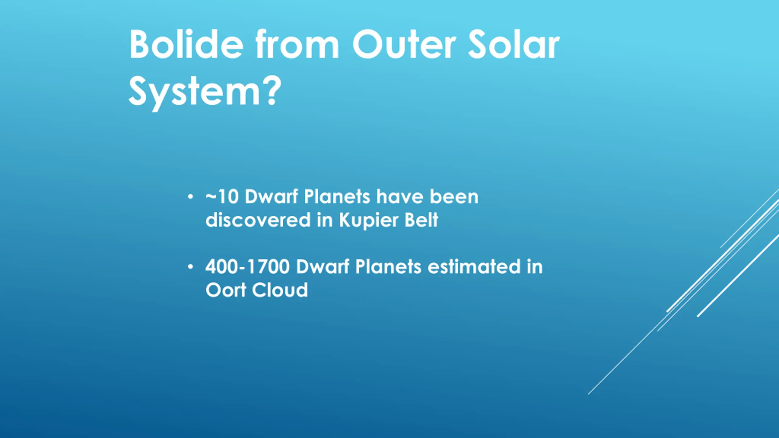 Bolide from Outer Solar System? ~10 Dwarf Planets have been discovered in Kupier Belt 400-1700 Dwarf Planets estimated in Oort Cloud