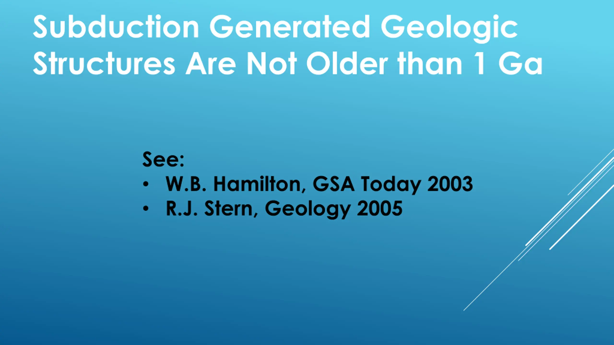 Subduction Generated Geologic Structures Are Not Older than 1 Ga See: W.B. Hamilton, GSA Today 2003 R.J. Stern, Geology 2005