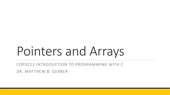 Pointers and Arrays COP3223 INTRODUCTION TO PROGRAMMING WITH C DR. MATTHEW B. GERBER