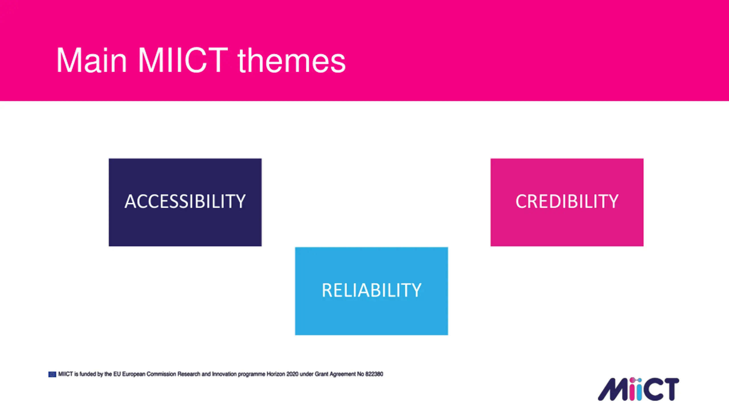 Main MIICT themes ACCESSIBILITY CREDIBILITY RELIABILITY