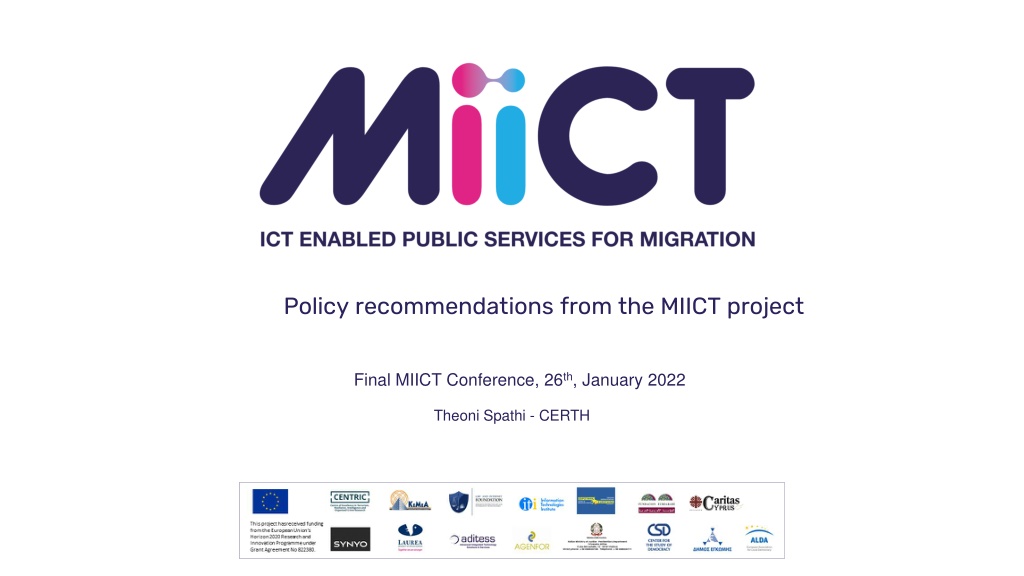 Policy recommendations from the MIICT project Final MIICT Conference, 26th, January 2022 Theoni Spathi - CERTH
