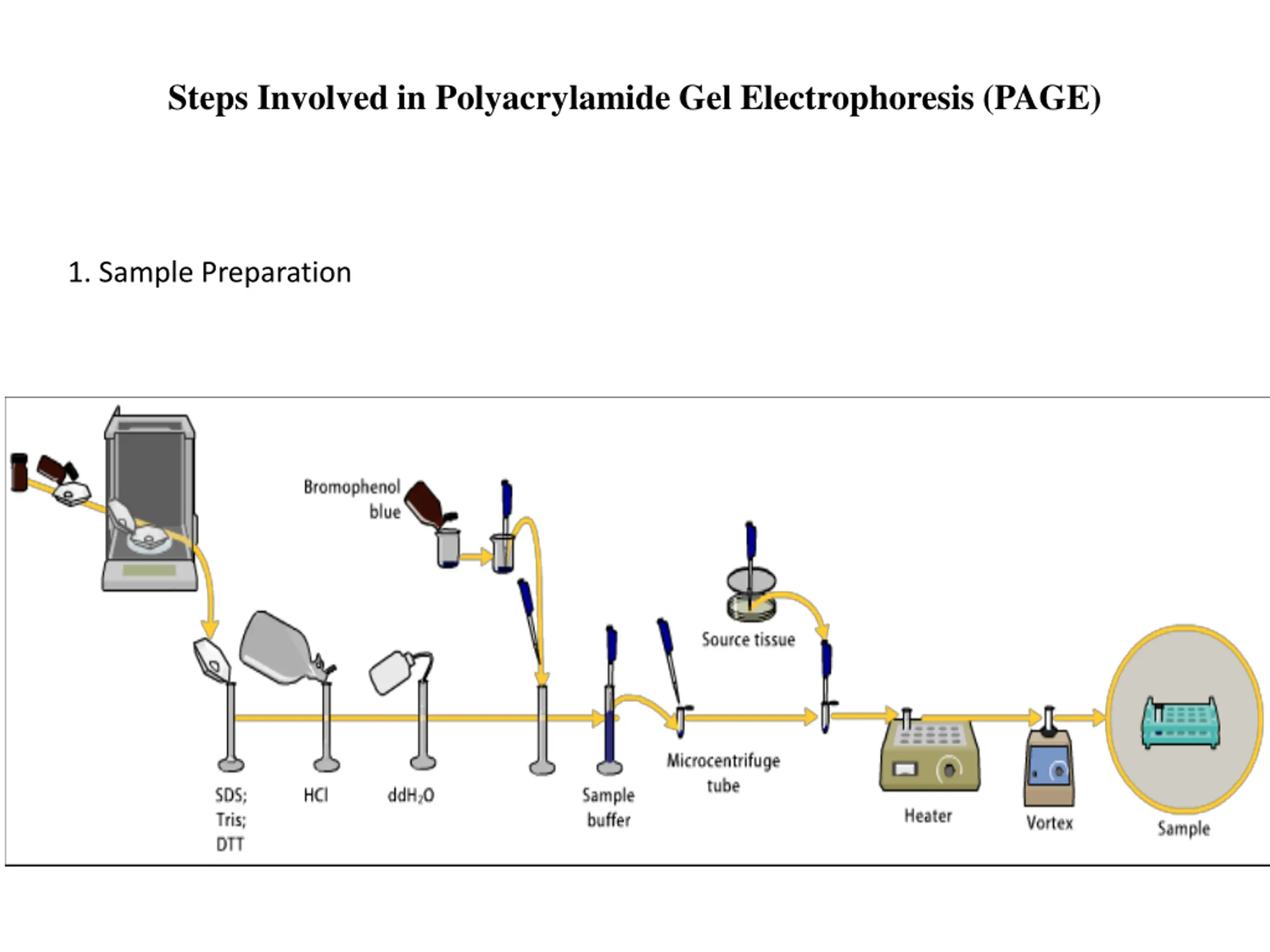 Steps Involved in Polyacrylamide Gel Electrophoresis (PAGE) 1. Sample Preparation