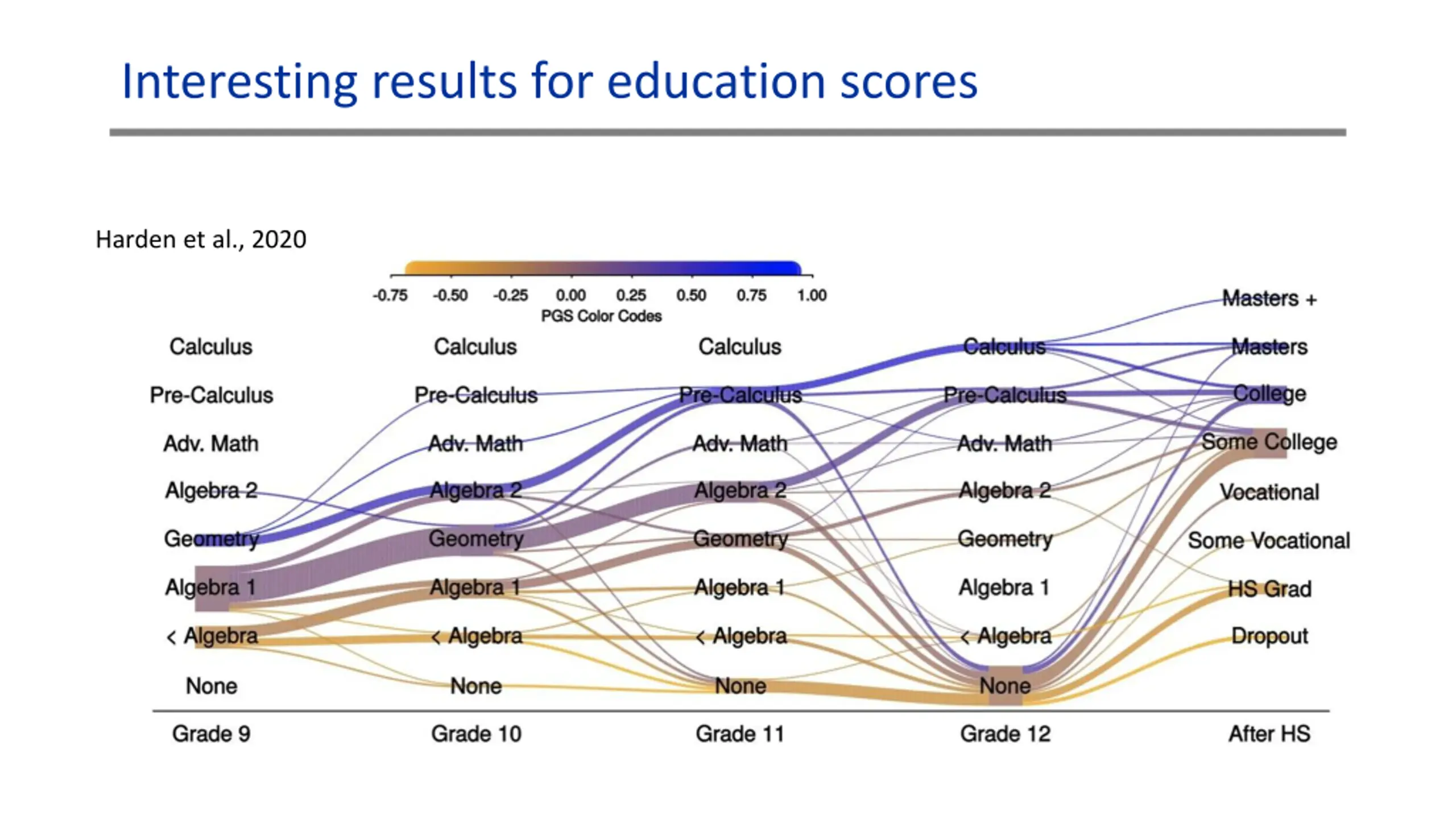 Interesting results for education scores Polygenic scores Townsend Deprivation index Kong et al., 2017 Average polygenic score Year of birth Abdellaoui et al., 2019