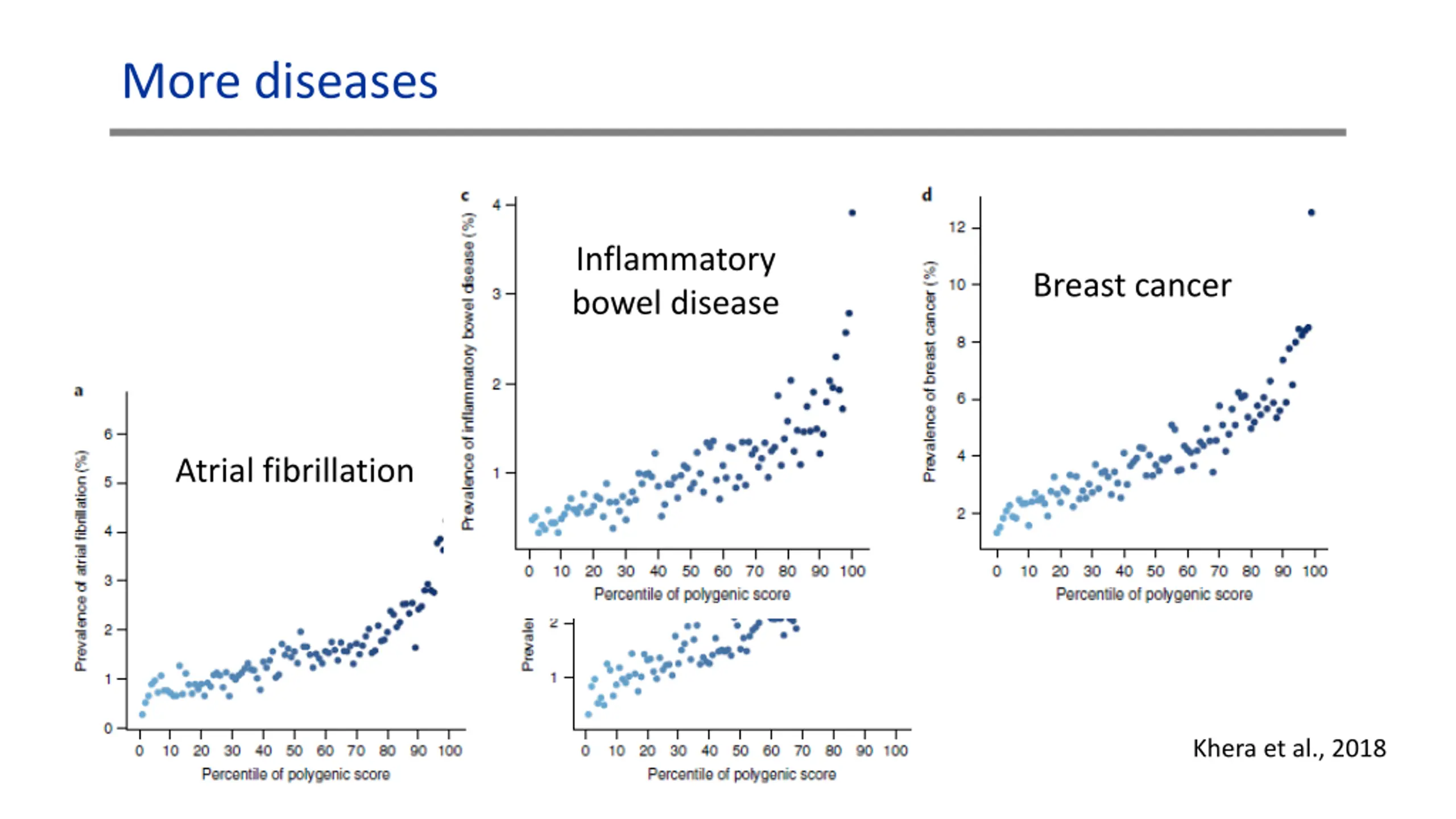 More diseases Inflammatory bowel disease Breast cancer Atrial fibrillation T2 diabetes Khera et al., 2018