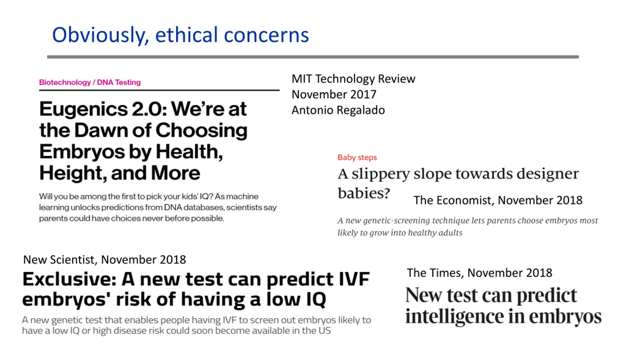 Obviously, ethical concerns MIT Technology Review November 2017 Antonio Regalado The Economist, November 2018 New Scientist, November 2018 The Times, November 2018