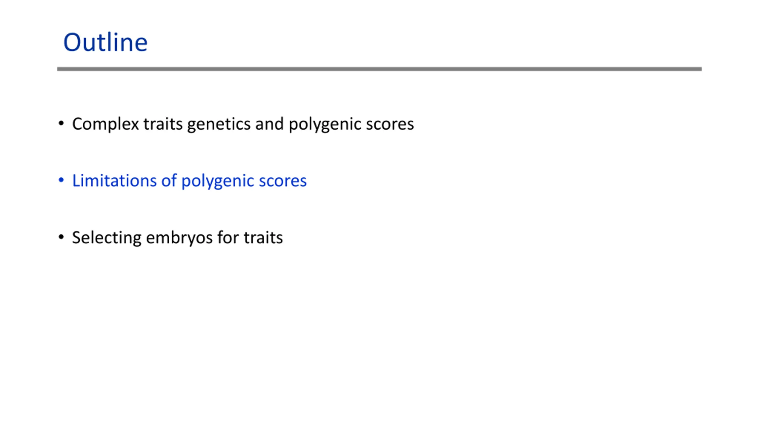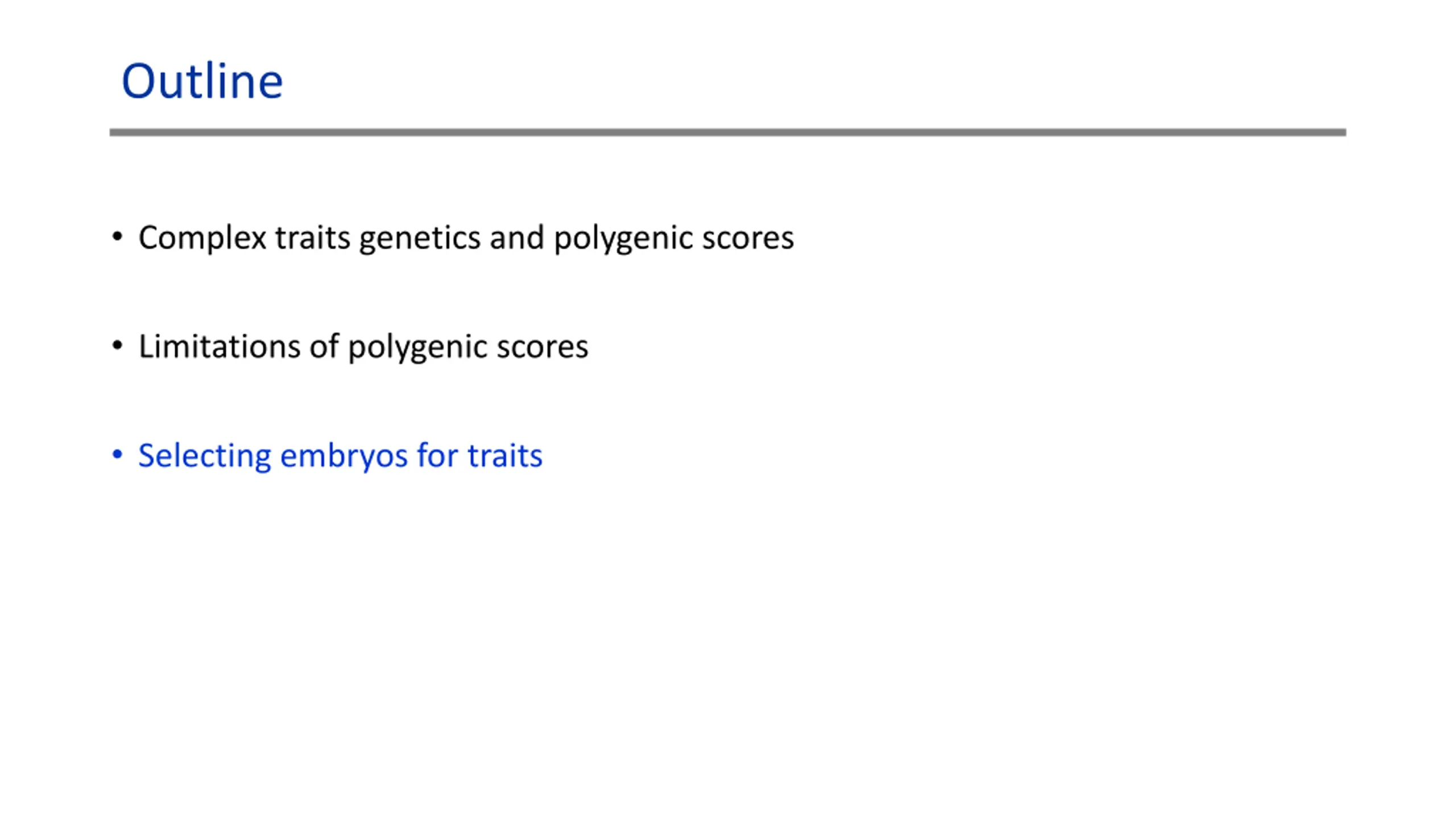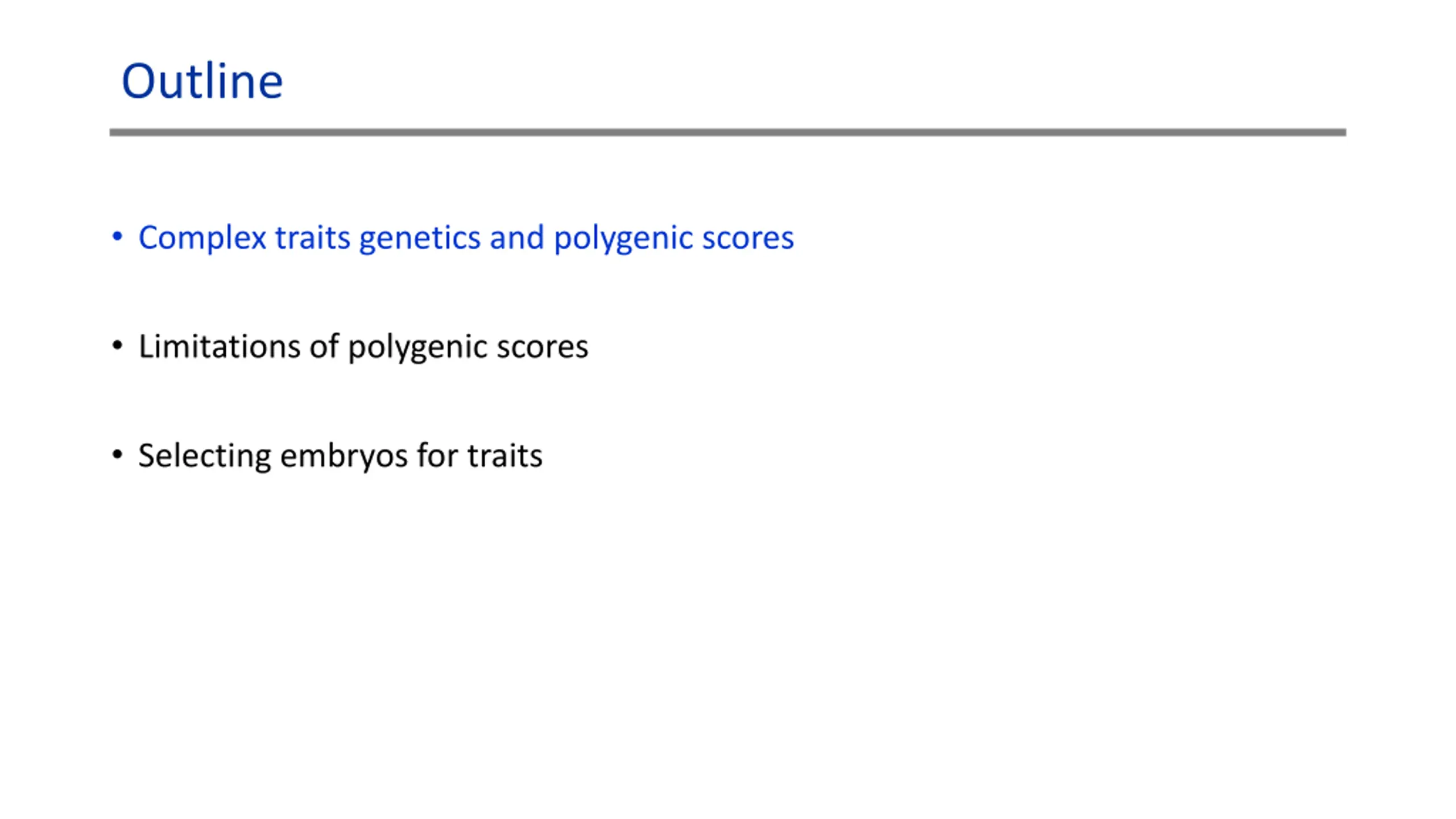 Outline Complex traits genetics and polygenic scores Limitations of polygenic scores Selecting embryos for traits