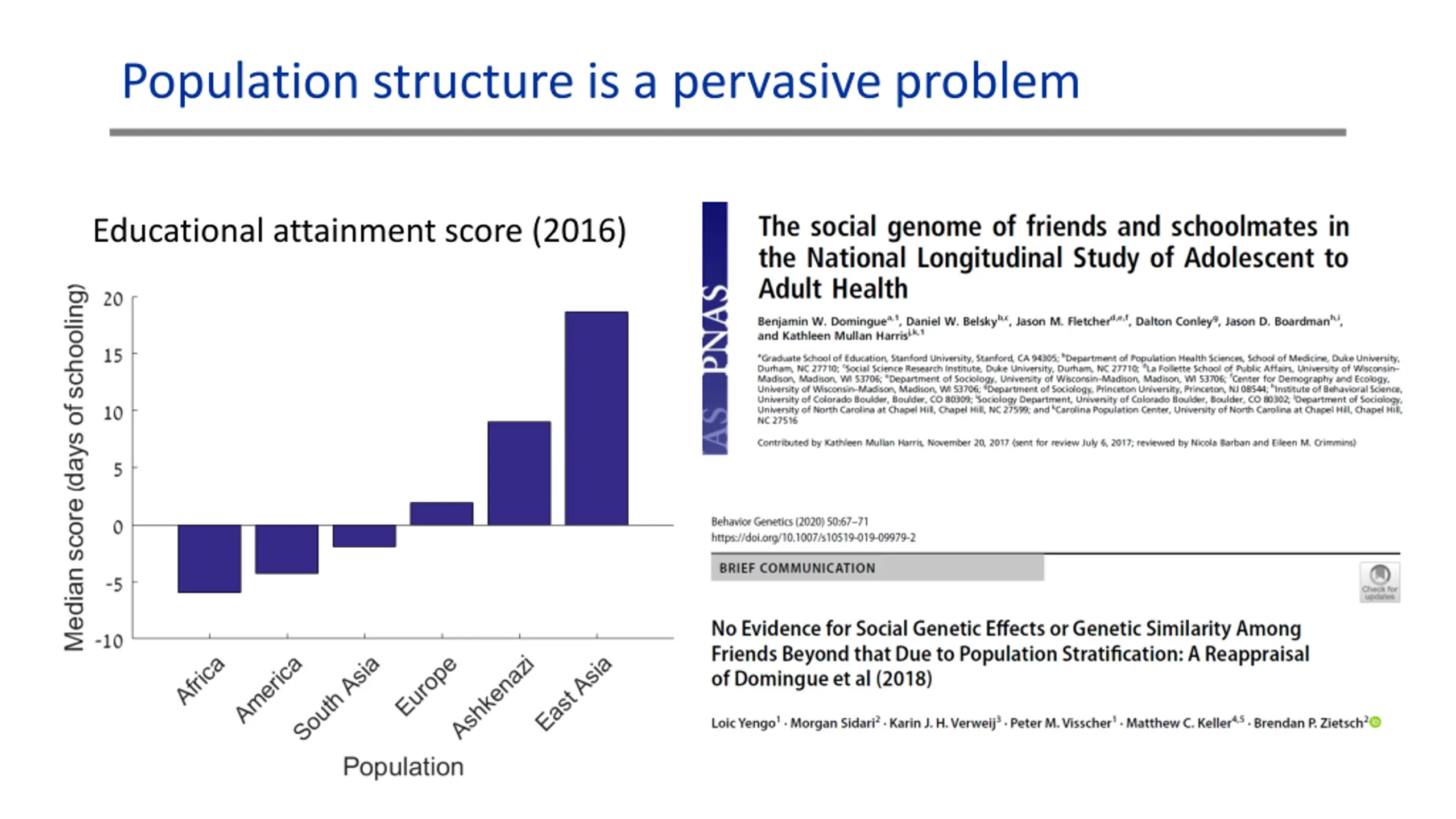 Problems with polygenic scores Problems when comparing scores across populations Low predictive accuracy in non-European populations Low predictive power within families Variable predictive power across age, calendar year, and population subgroups