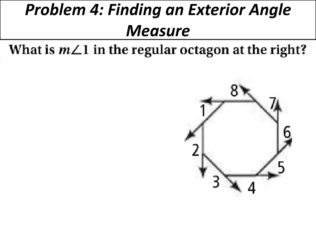Polygon Exterior Angle-Sum Theorem The sum of the measures of the exterior angles of a polygon, one at each vertex, is 360. For the pentagon