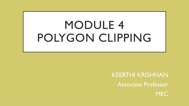 MODULE 4 POLYGON CLIPPING KEERTHI KRISHNAN Associate Professor MEC