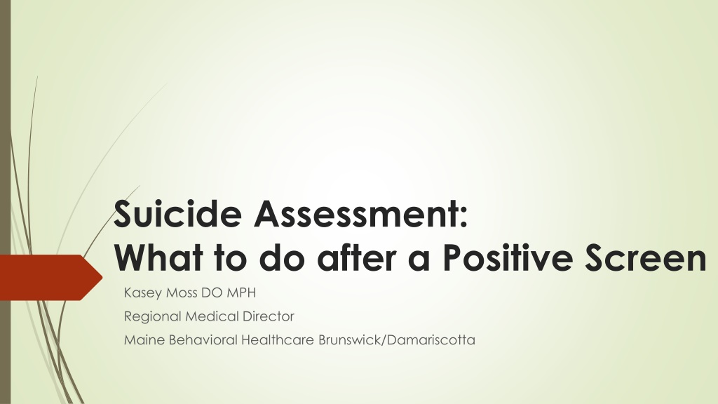 Suicide Assessment: What to do after a Positive Screen Kasey Moss DO MPH Regional Medical Director Maine Behavioral Healthcare Brunswick/Damariscotta