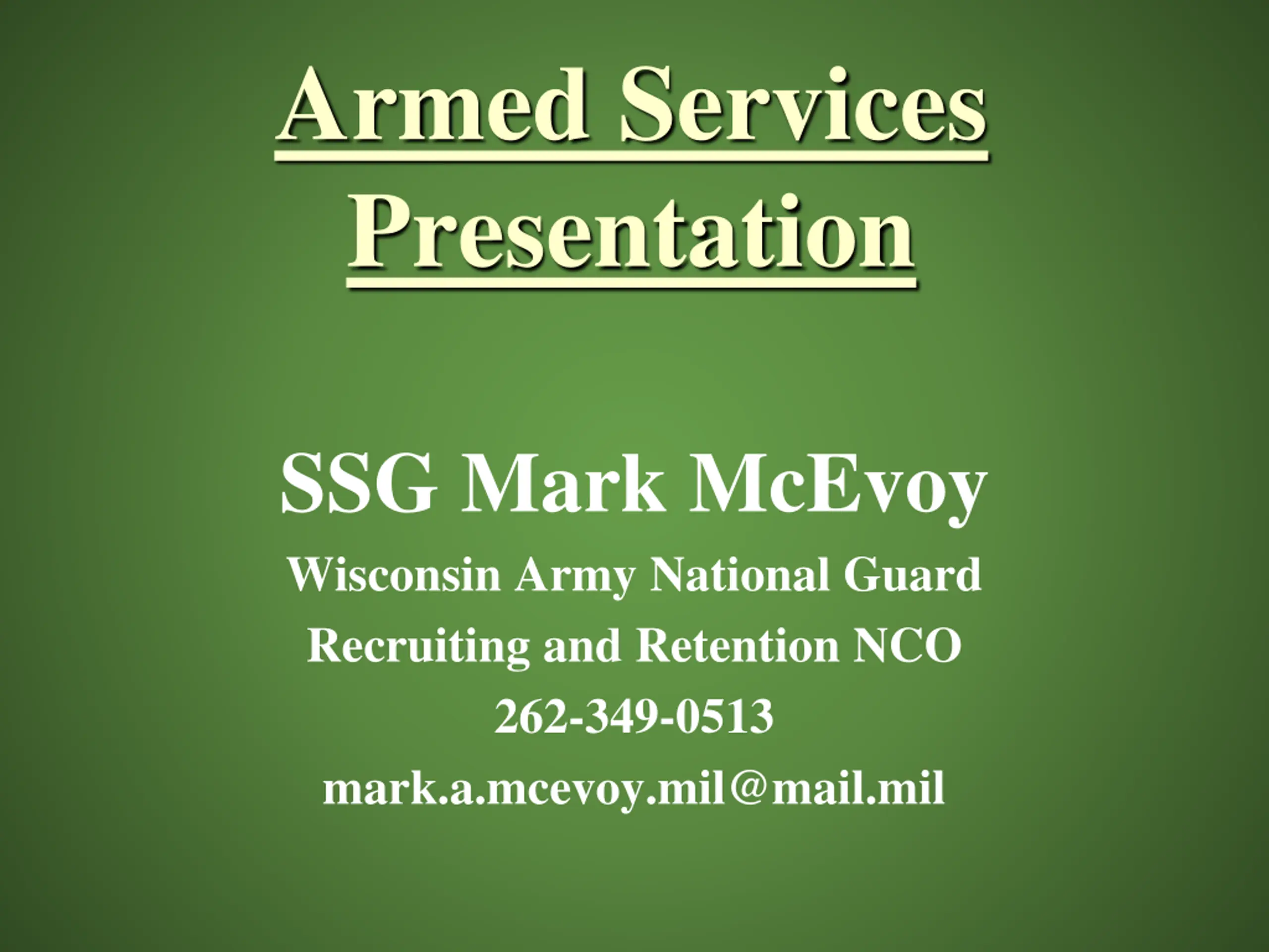 Armed Services Presentation SSG Mark McEvoy Wisconsin Army National Guard Recruiting and Retention NCO 262-349-0513 mark.a.mcevoy.mil@mail.mil