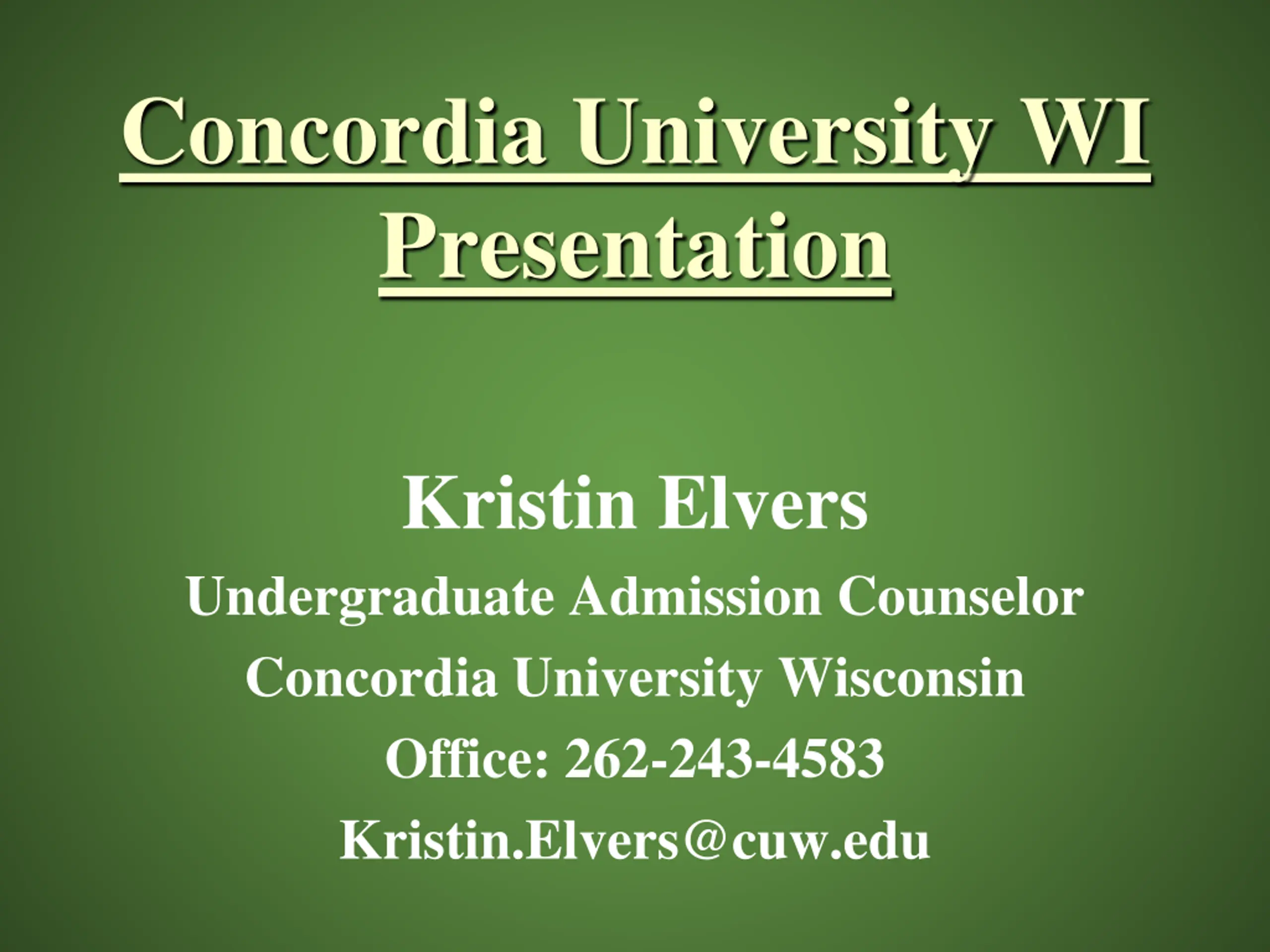 Concordia University WI Presentation Kristin Elvers Undergraduate Admission Counselor Concordia University Wisconsin Office: 262-243-4583 Kristin.Elvers@cuw.edu