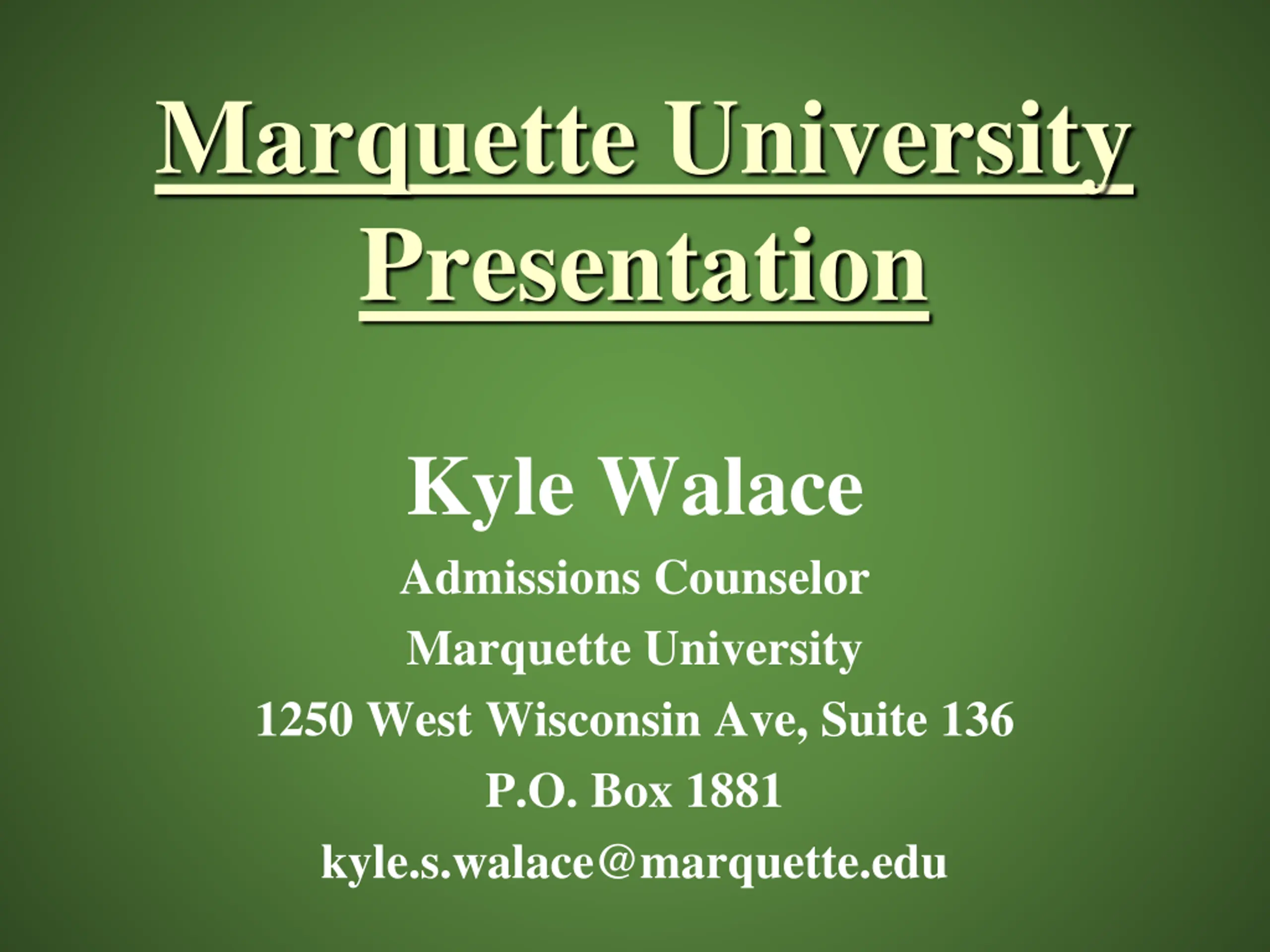 Marquette University Presentation Kyle Walace Admissions Counselor Marquette University 1250 West Wisconsin Ave, Suite 136 P.O. Box 1881 kyle.s.walace@marquette.edu