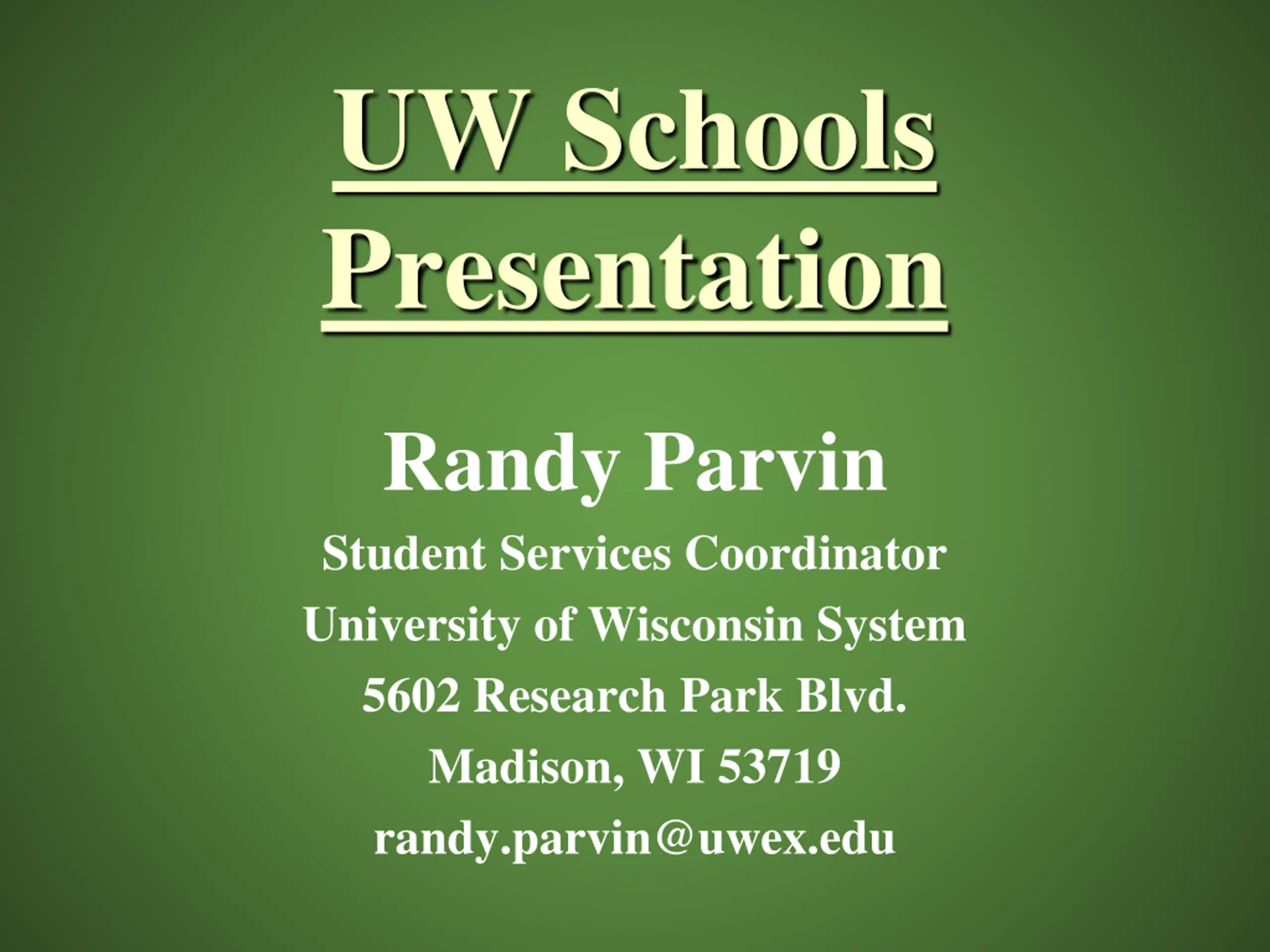 UW Schools Presentation Randy Parvin Student Services Coordinator University of Wisconsin System 5602 Research Park Blvd. Madison, WI 53719 randy.parvin@uwex.edu