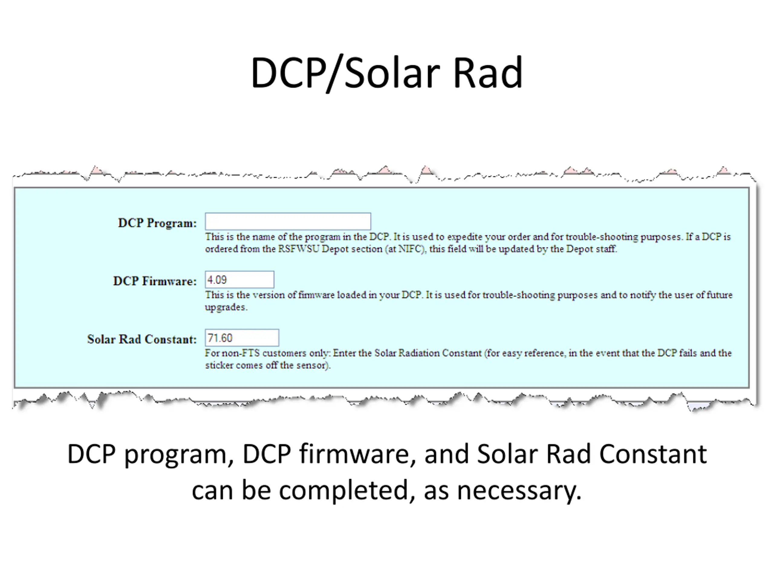 DCP/Solar Rad DCP program, DCP firmware, and Solar Rad Constant can be completed, as necessary.