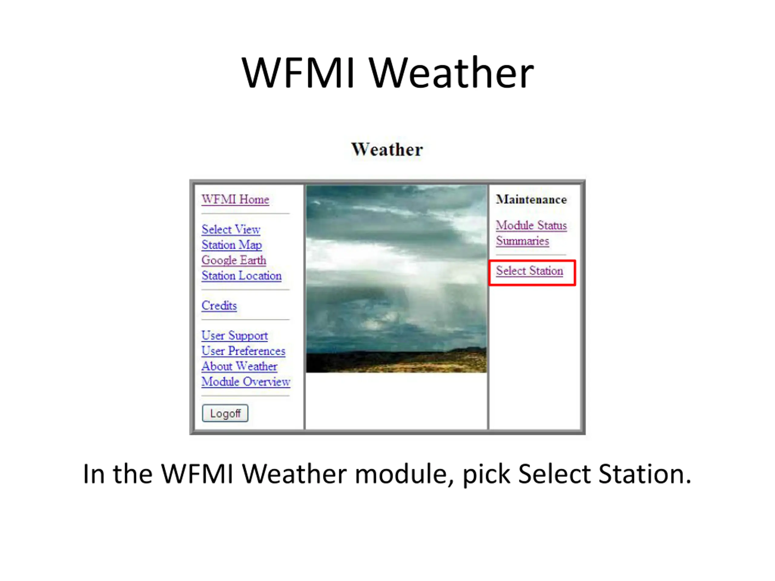WFMI Weather In the WFMI Weather module, pick Select Station.