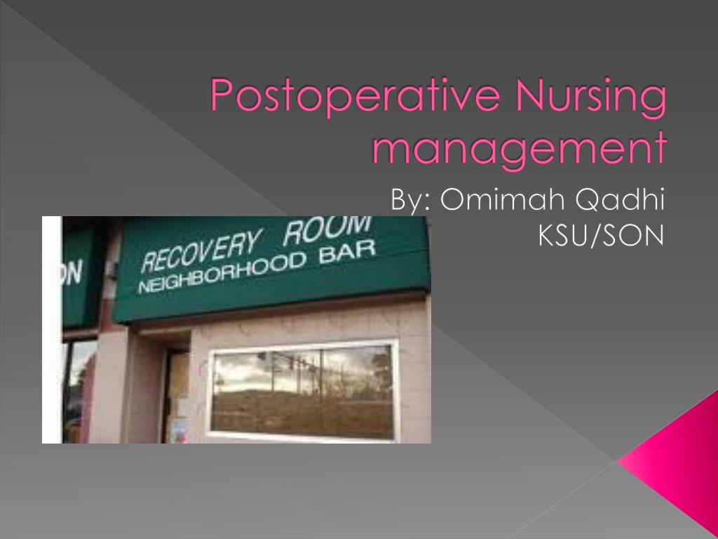 Postoperative Nursing management By: Omimah Qadhi KSU/SON