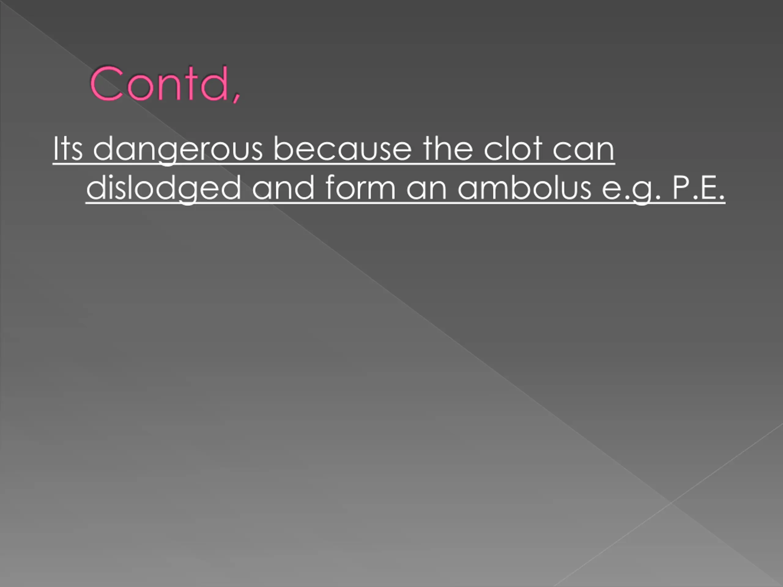 Contd, Its dangerous because the clot can dislodged and form an ambolus e.g. P.E.