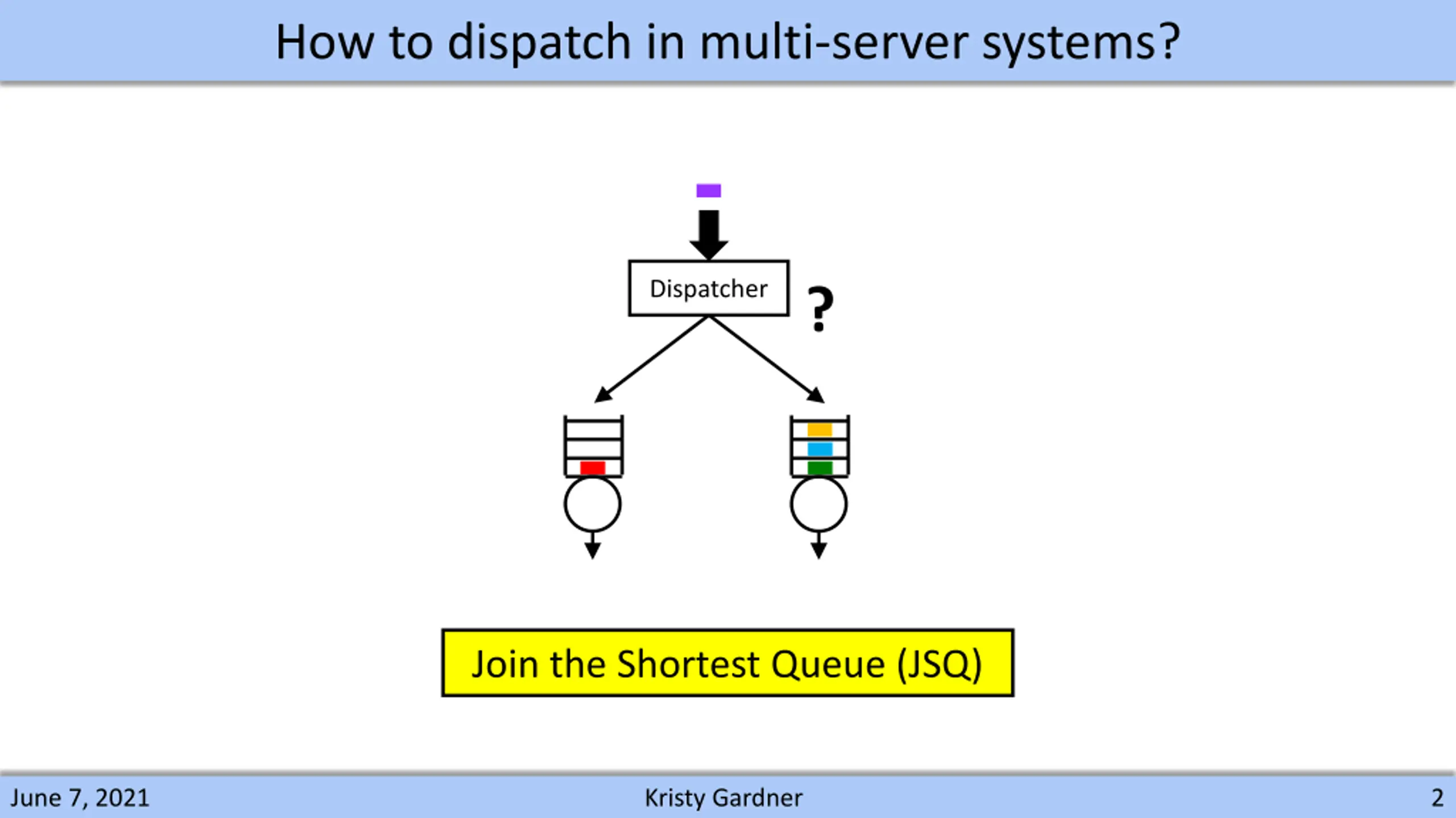 How to dispatch in multi-server systems? Dispatcher? Join the Shortest Queue (JSQ) June 7, 2021 Kristy Gardner 2 7