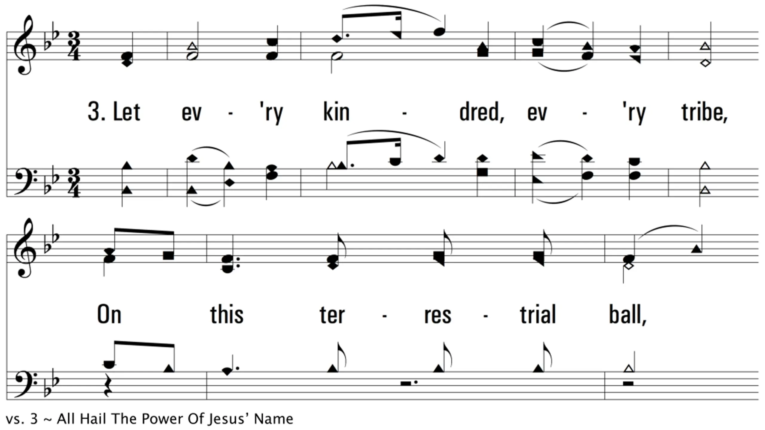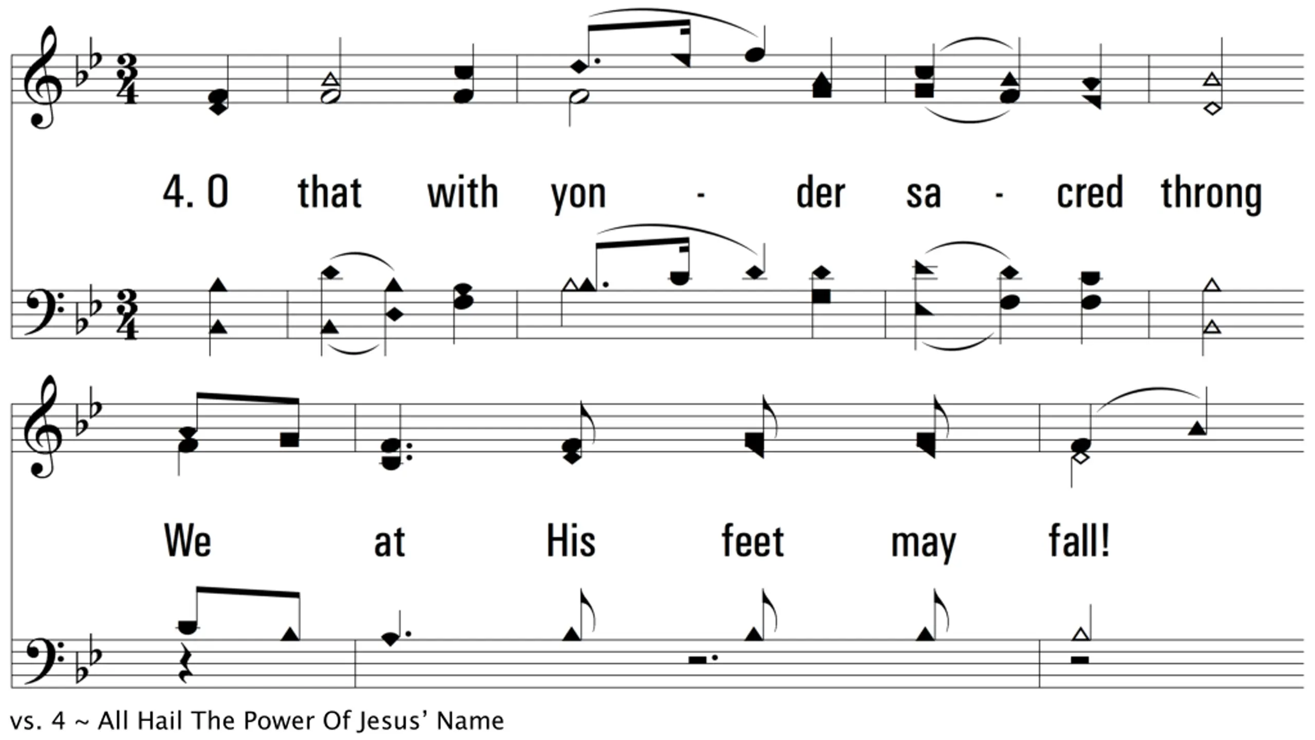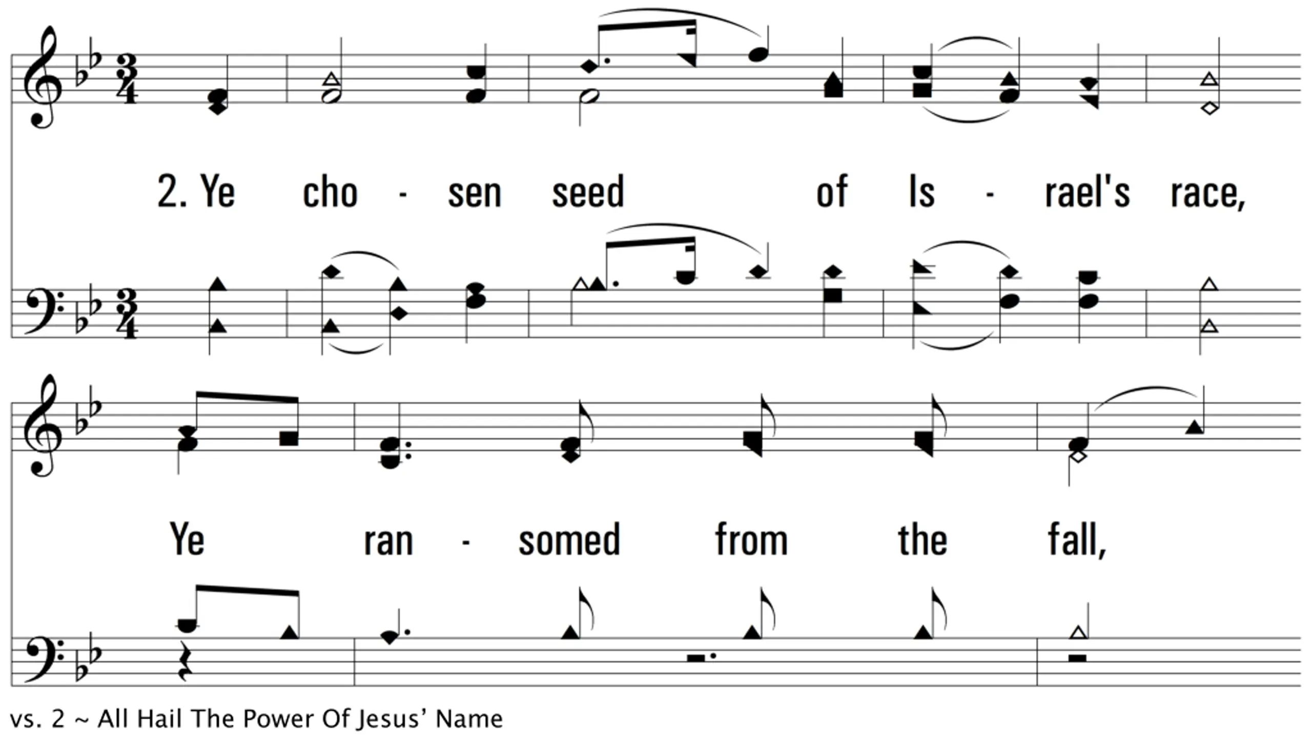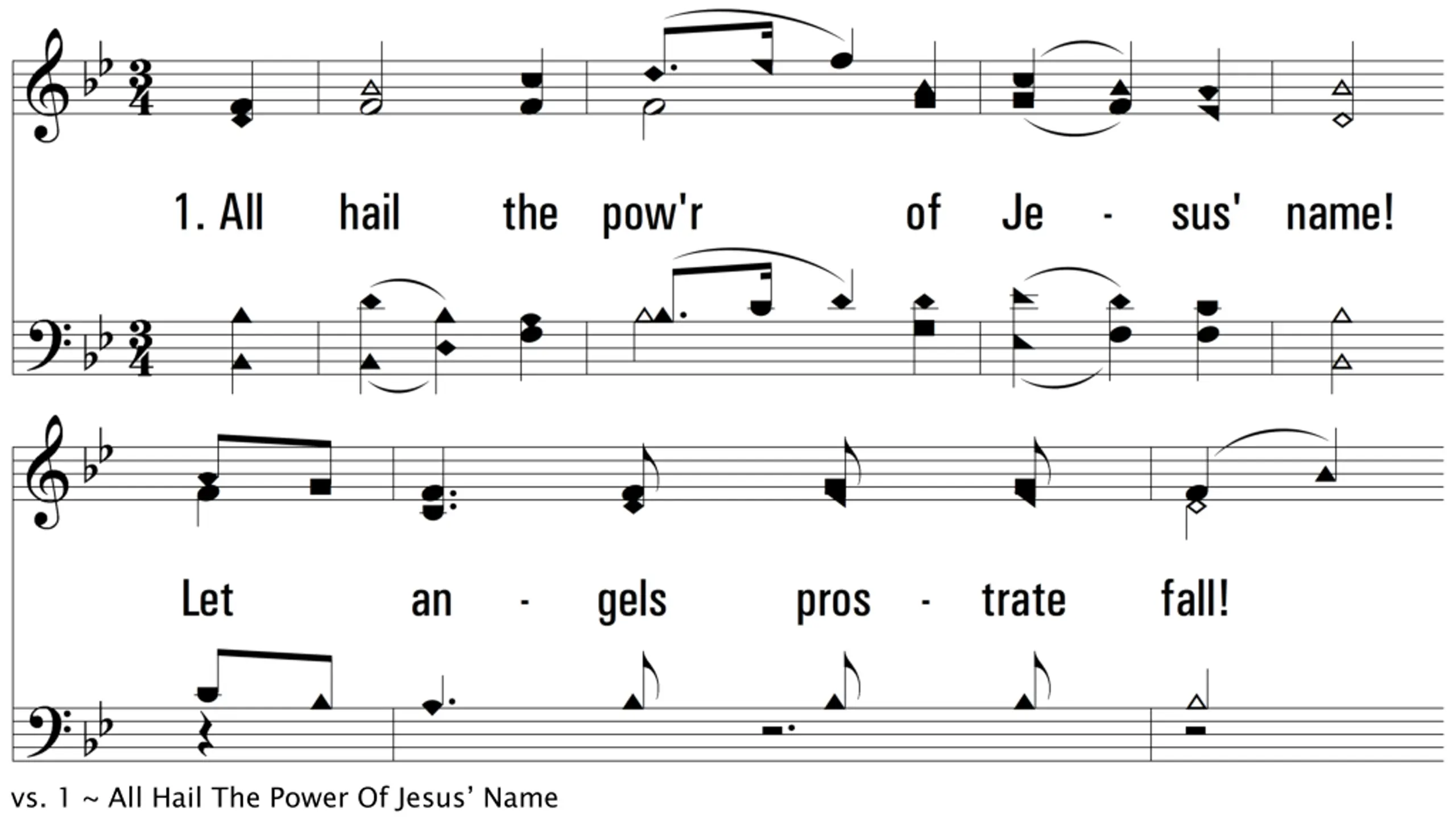 All Hail The Power Of Jesus Name DIADEM CM Words: Edward Perronet, 1779, St. 4, John Rippon, 1787 Music: James Ellor, 1838 Lead - SOL Alto - MI Tenor - DO Bass - DO 3/4 Bb/F - SOL Verses: 3/Chorus PDHymns.com