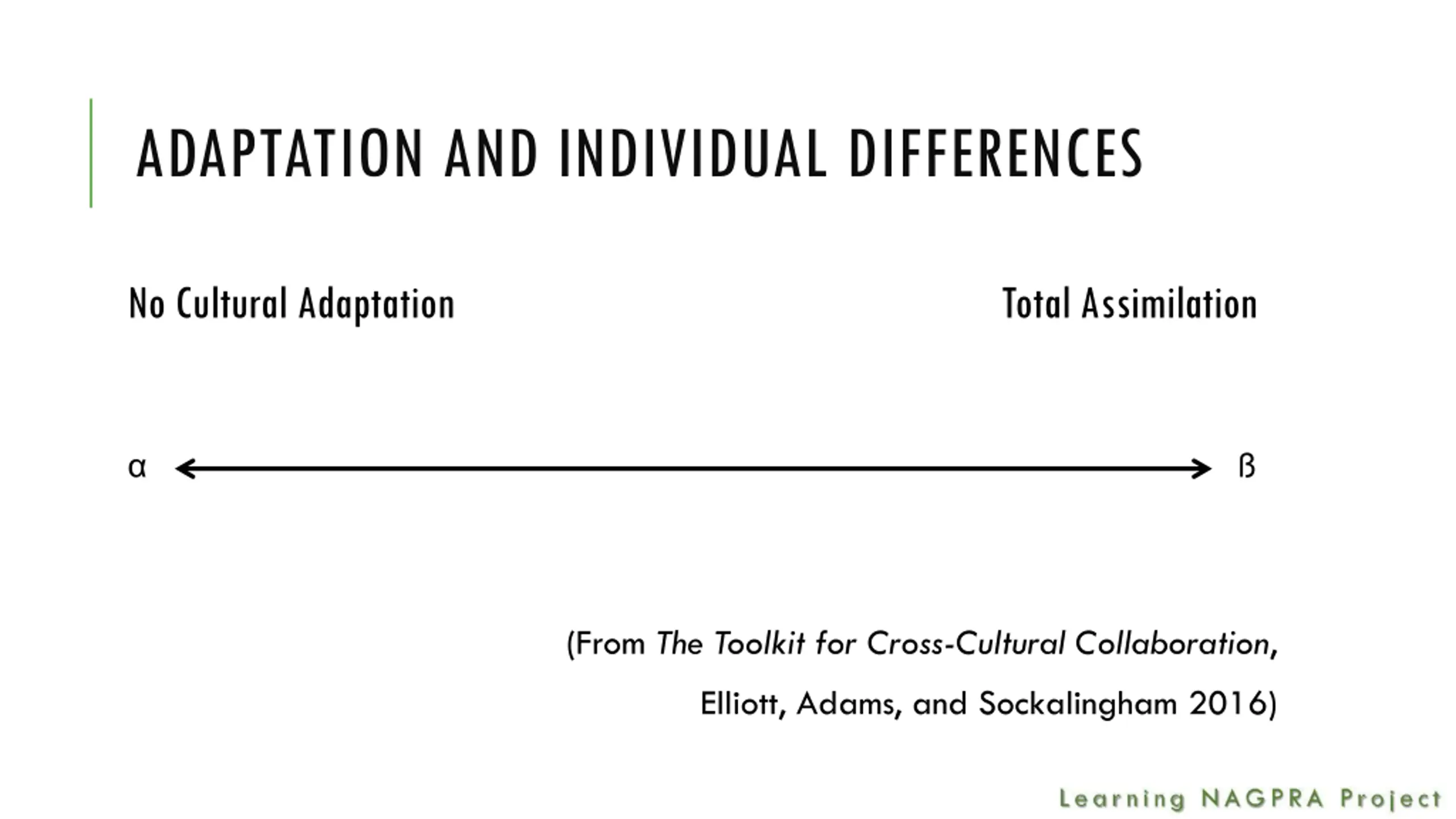 ADAPTATION AND INDIVIDUAL DIFFERENCES No Cultural Adaptation Total Assimilation (From The Toolkit for Cross-Cultural Collaboration, Elliott, Adams, and Sockalingham 2016)