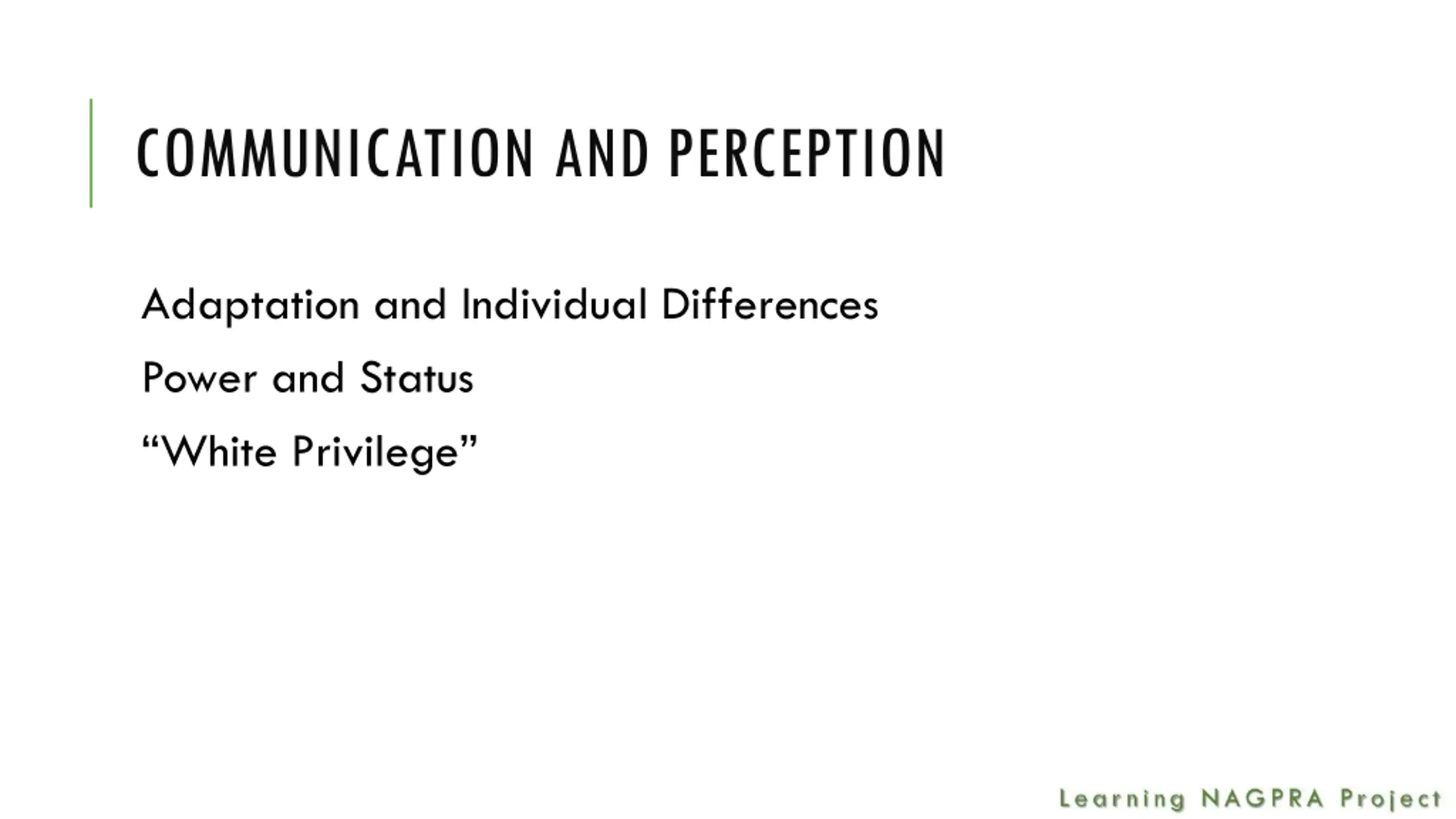 COMMUNICATION AND PERCEPTION Adaptation and Individual Differences Power and Status White Privilege