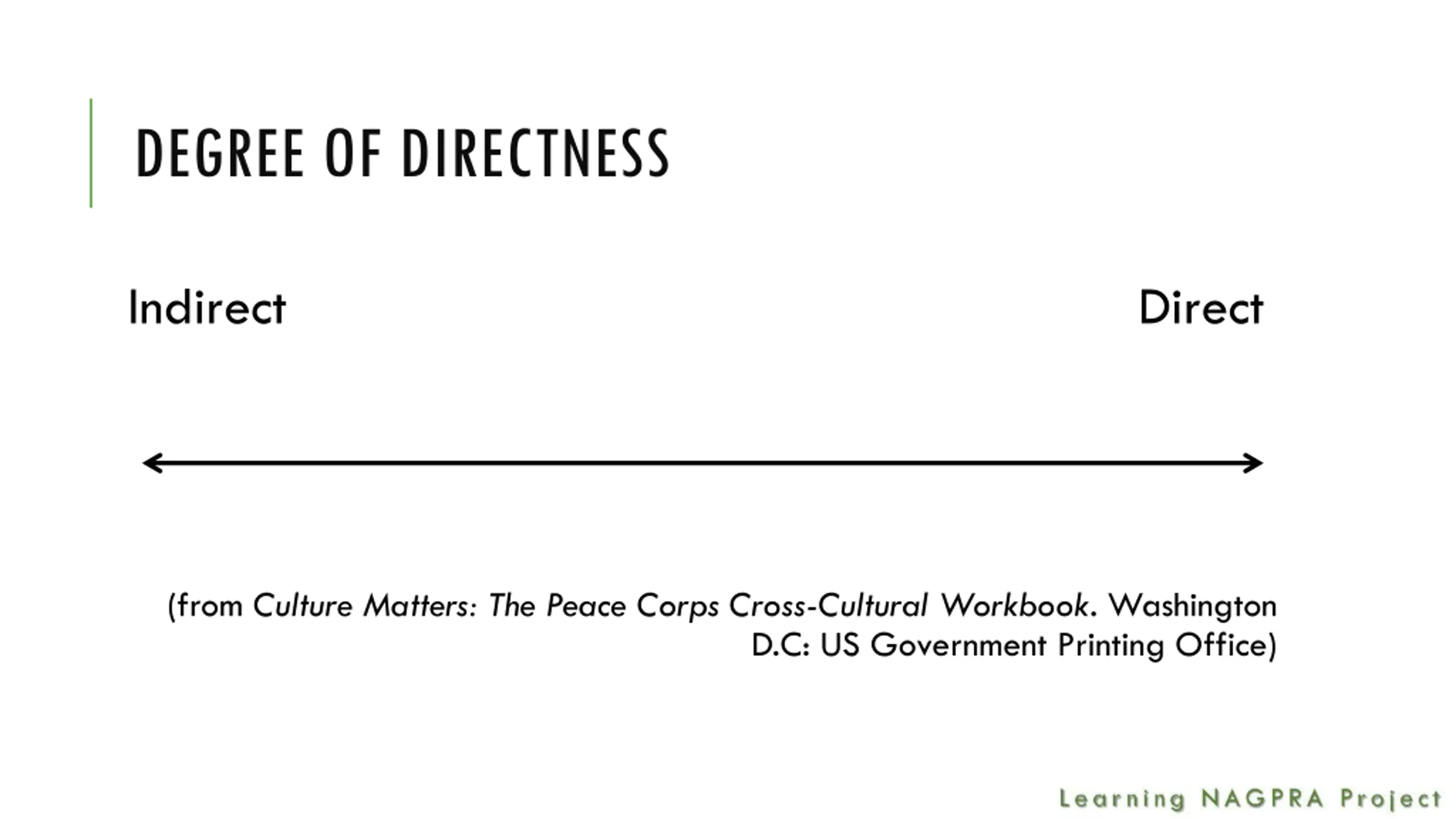 DEGREE OF DIRECTNESS Indirect Direct (from Culture Matters: The Peace Corps Cross-Cultural Workbook. Washington D.C: US Government Printing Office)