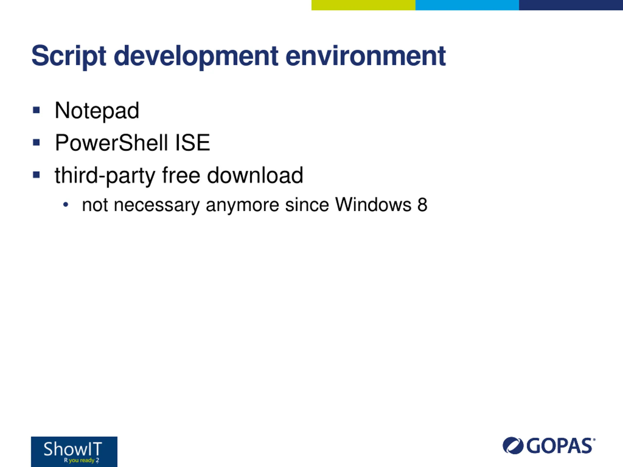 Script development environment Notepad PowerShell ISE third-party free download not necessary anymore since Windows 8