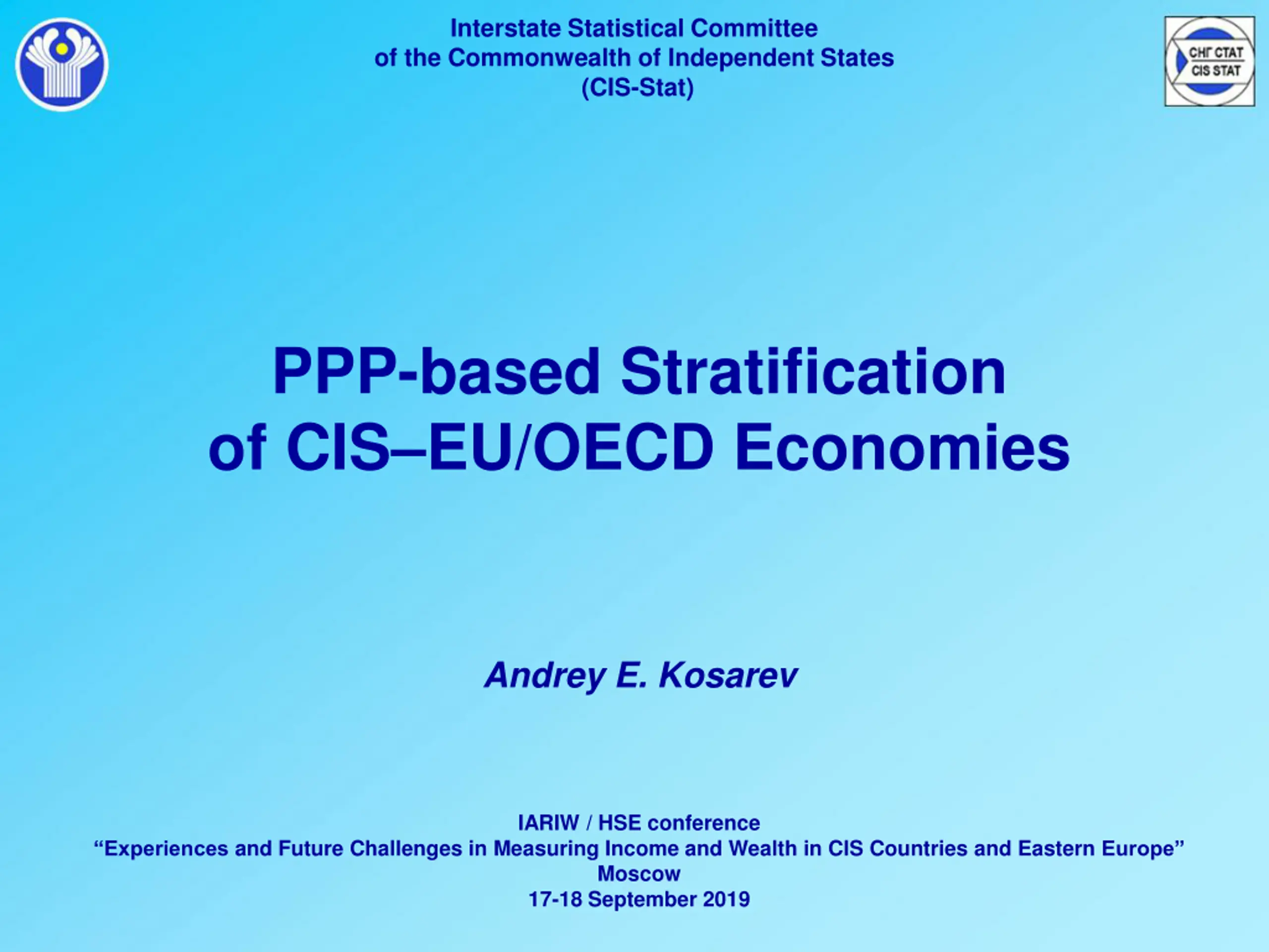 Interstate Statistical Committee of the Commonwealth of Independent States (CIS-Stat) PPP-based Stratification of CIS EU/OECD Economies Andrey E. Kosarev IARIW / HSE conference Experiences and Future Challenges in Measuring Income and Wealth in CIS Countries and Eastern Europe Moscow 17-18 September 2019