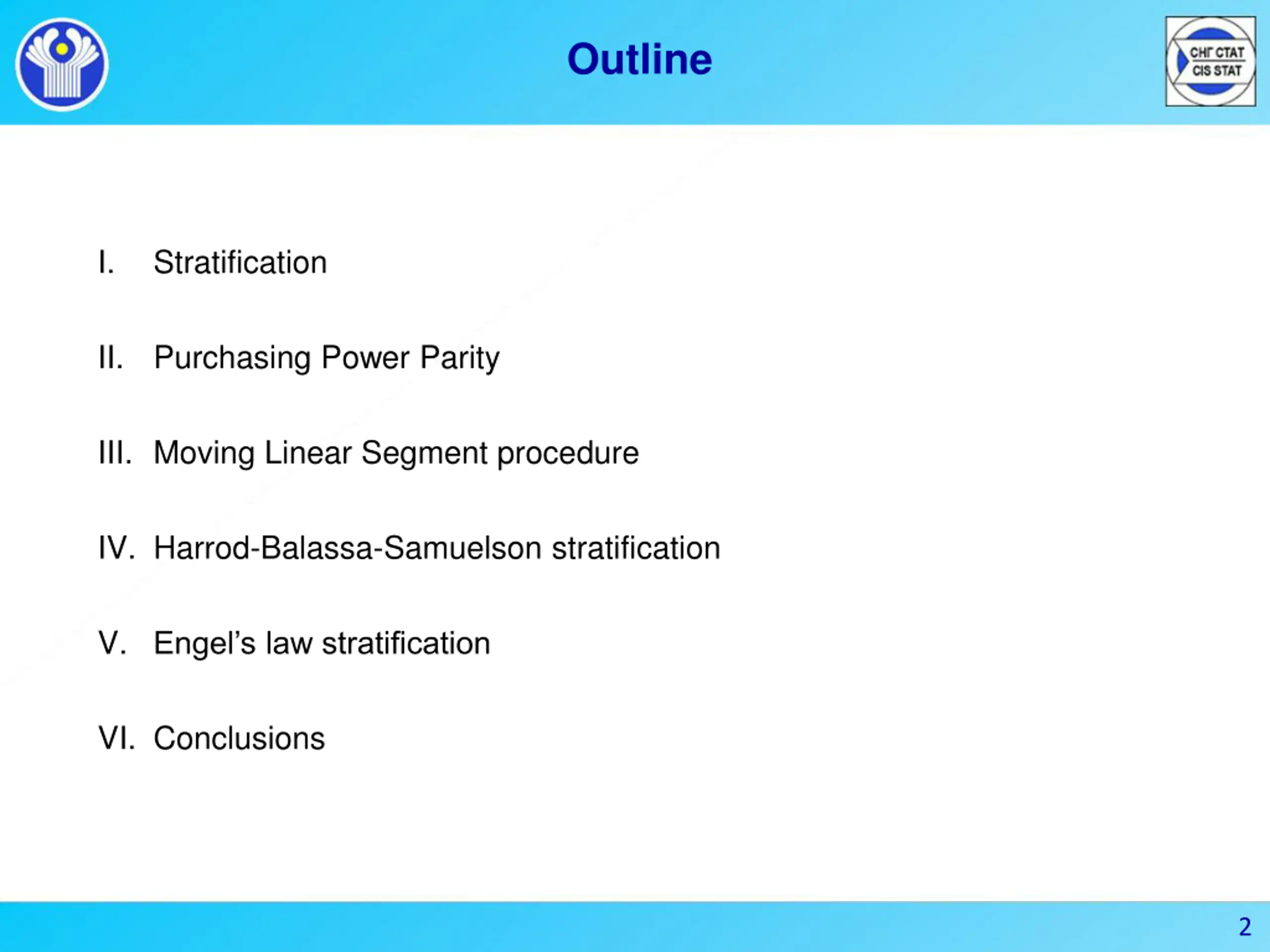 Outline I. Stratification II. Purchasing Power Parity III. Moving Linear Segment procedure IV. Harrod-Balassa-Samuelson stratification V. Engel s law stratification VI. Conclusions 2