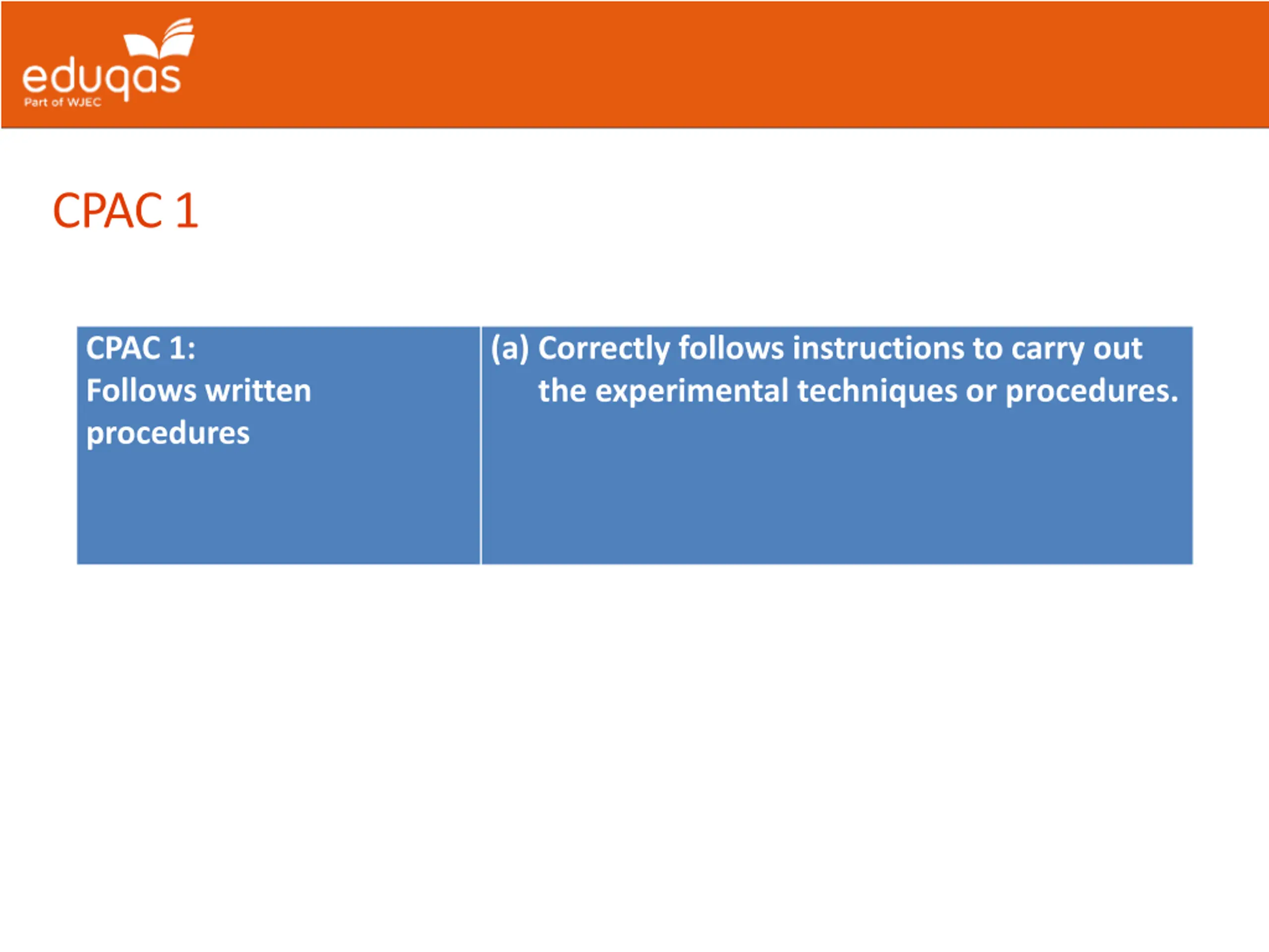 CPAC 1 CPAC 1: Follows written procedures (a) Correctly follows instructions to carry out the experimental techniques or procedures.