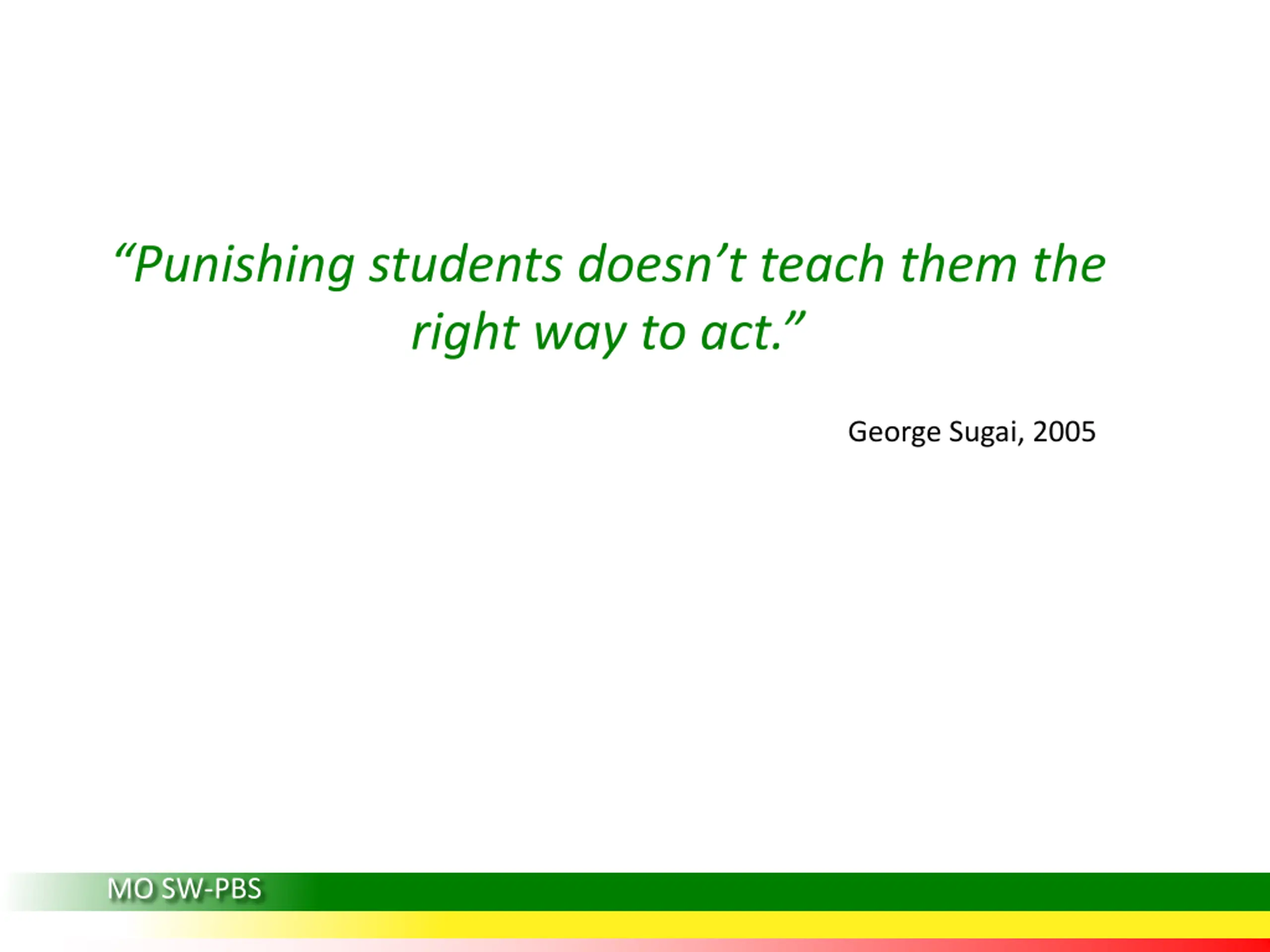 Punishing students doesnt teach them the right way to act. George Sugai, 2005 MO SW-PBS