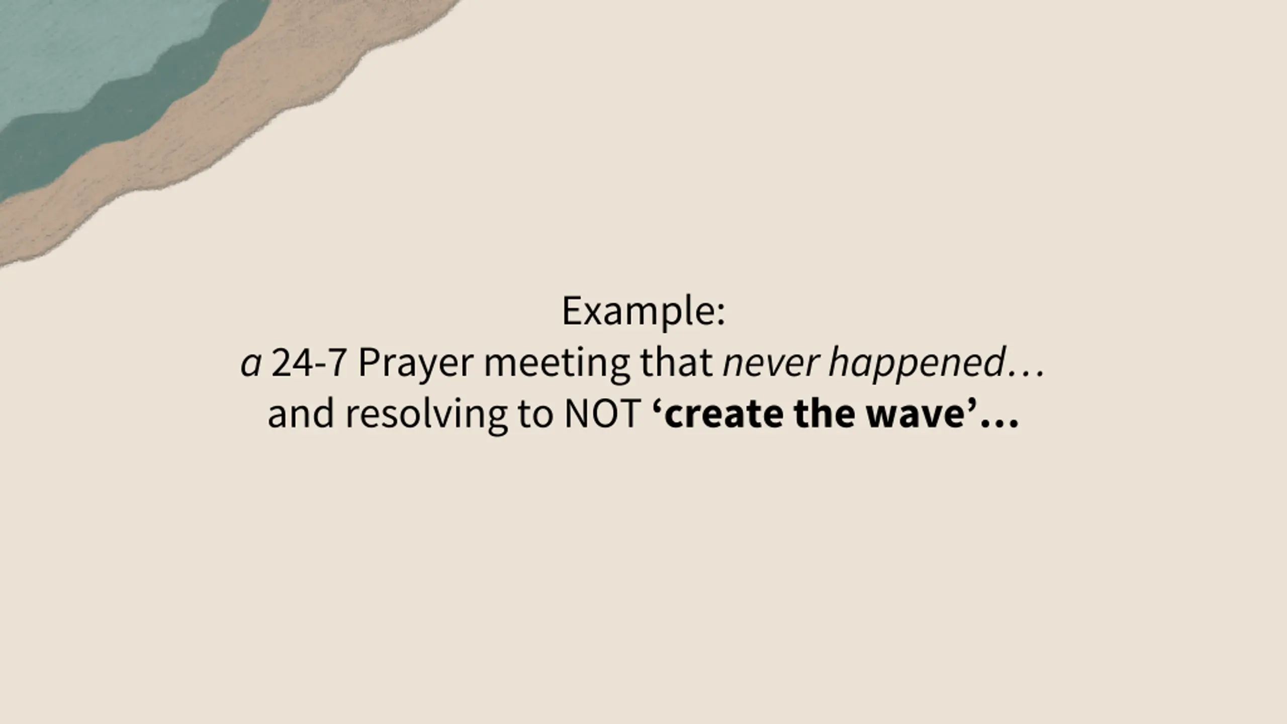 Example: a 24-7 Prayer meeting that never happened and resolving to NOT create the wave