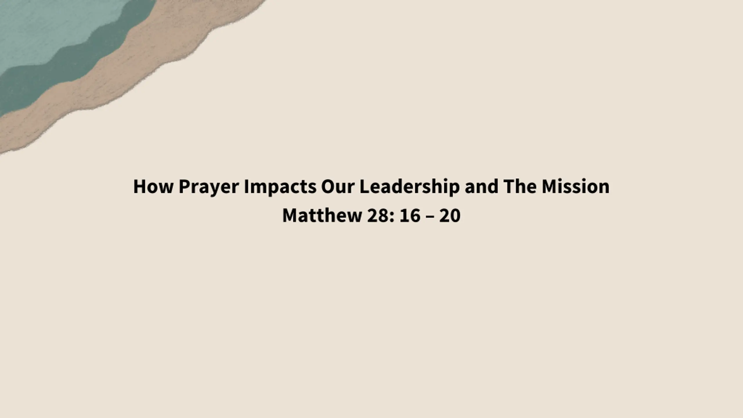 How Prayer Impacts Our Leadership and The Mission Matthew 28: 16 20