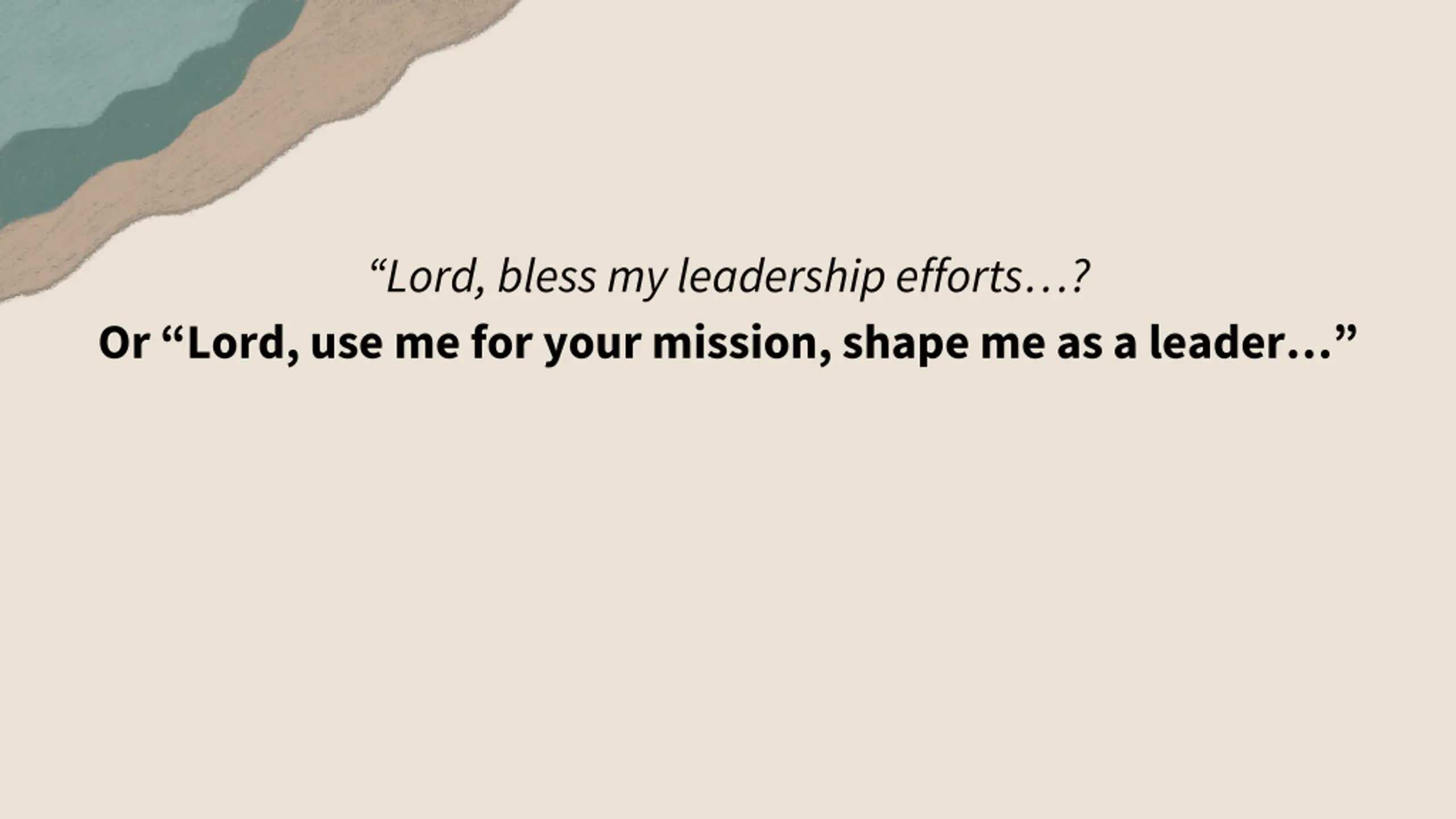 Lord, bless my leadership efforts? Or Lord, use me for your mission, shape me as a leader