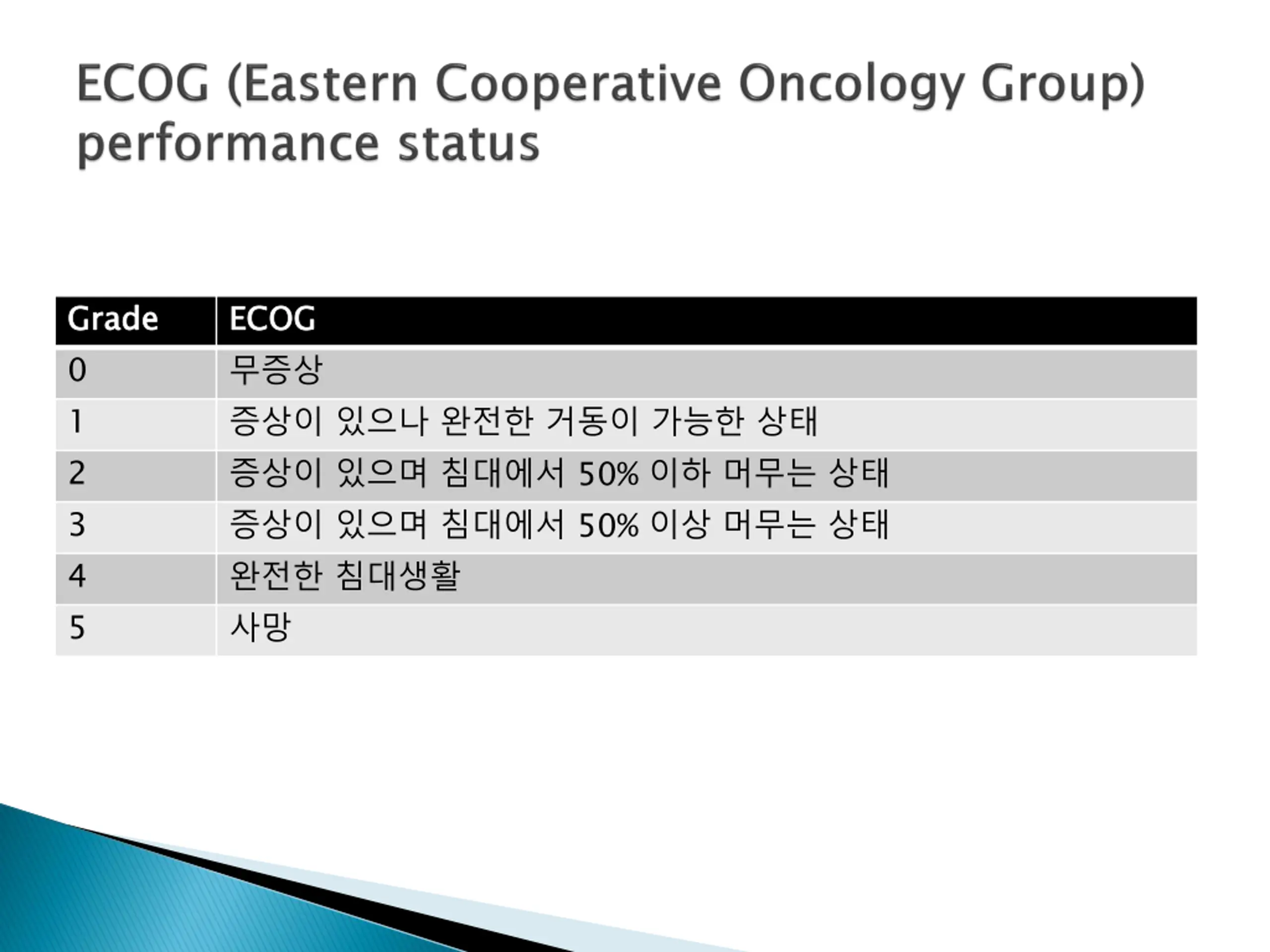 Grade 0 1 2 3 4 5 Grade ECOG 50% 50% ECOG