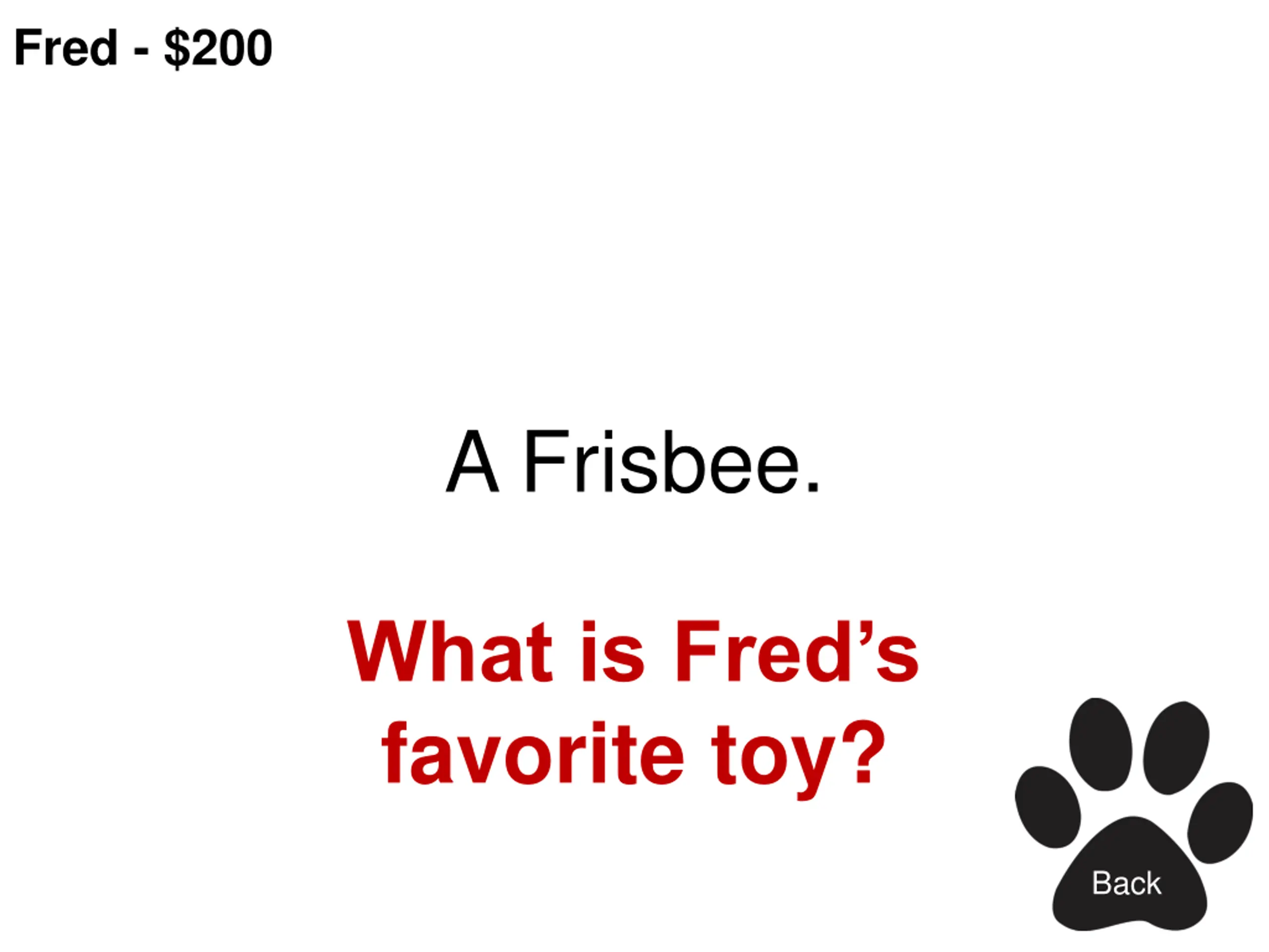 Fred - $200 A Frisbee. What is Fred s favorite toy? Back Back