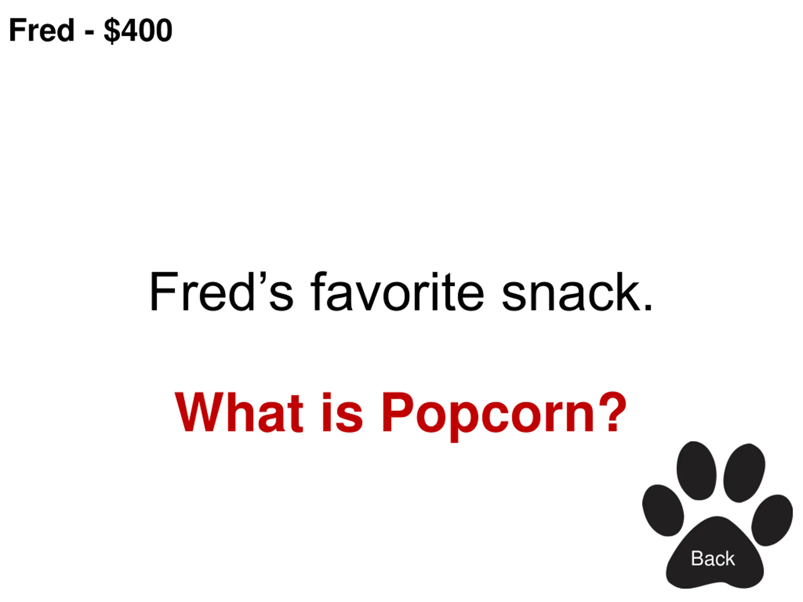 Fred - $400 Fred s favorite snack. What is Popcorn? Back Back