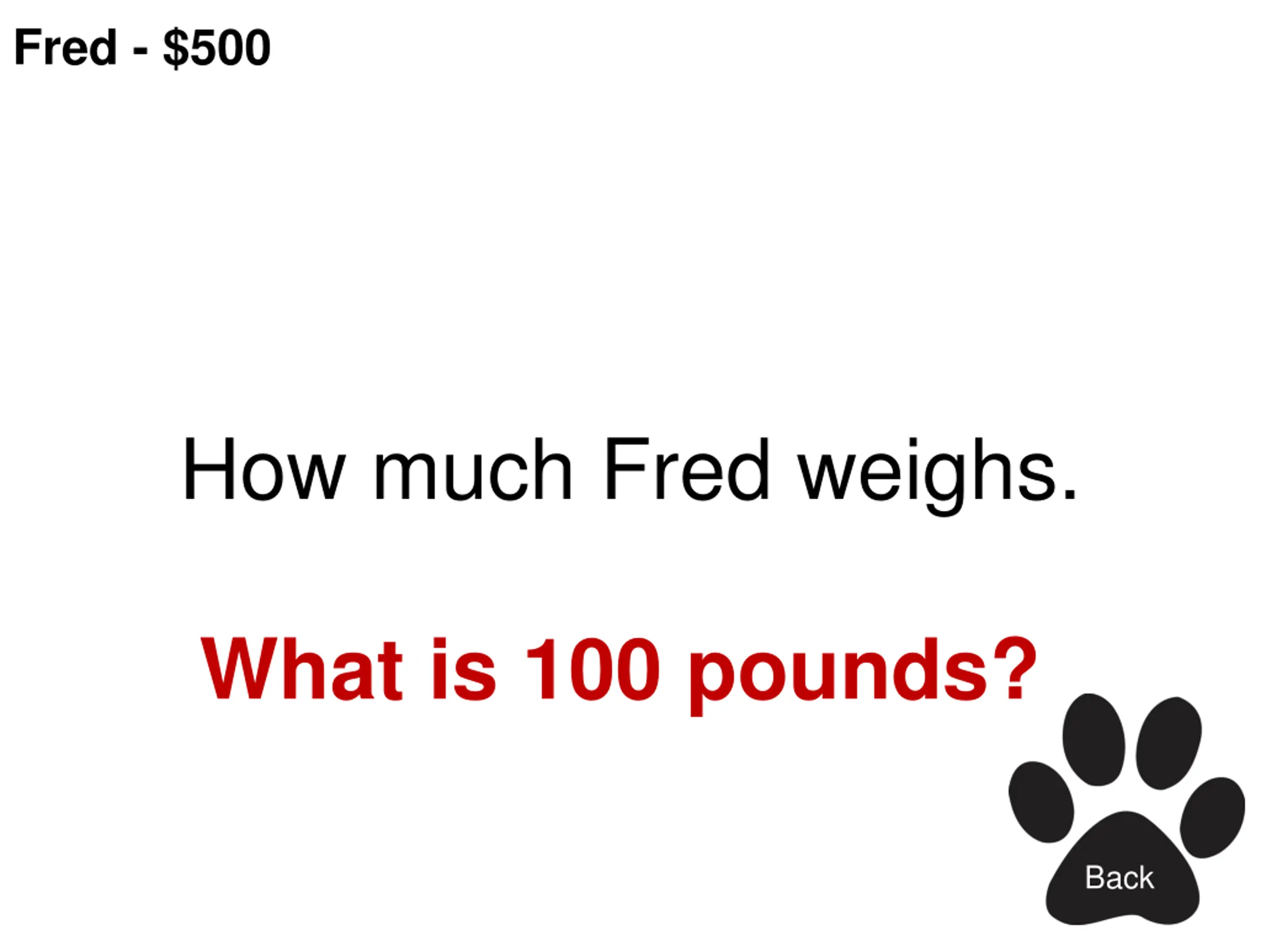 Fred - $500 How much Fred weighs. What is 100 pounds? Back Back