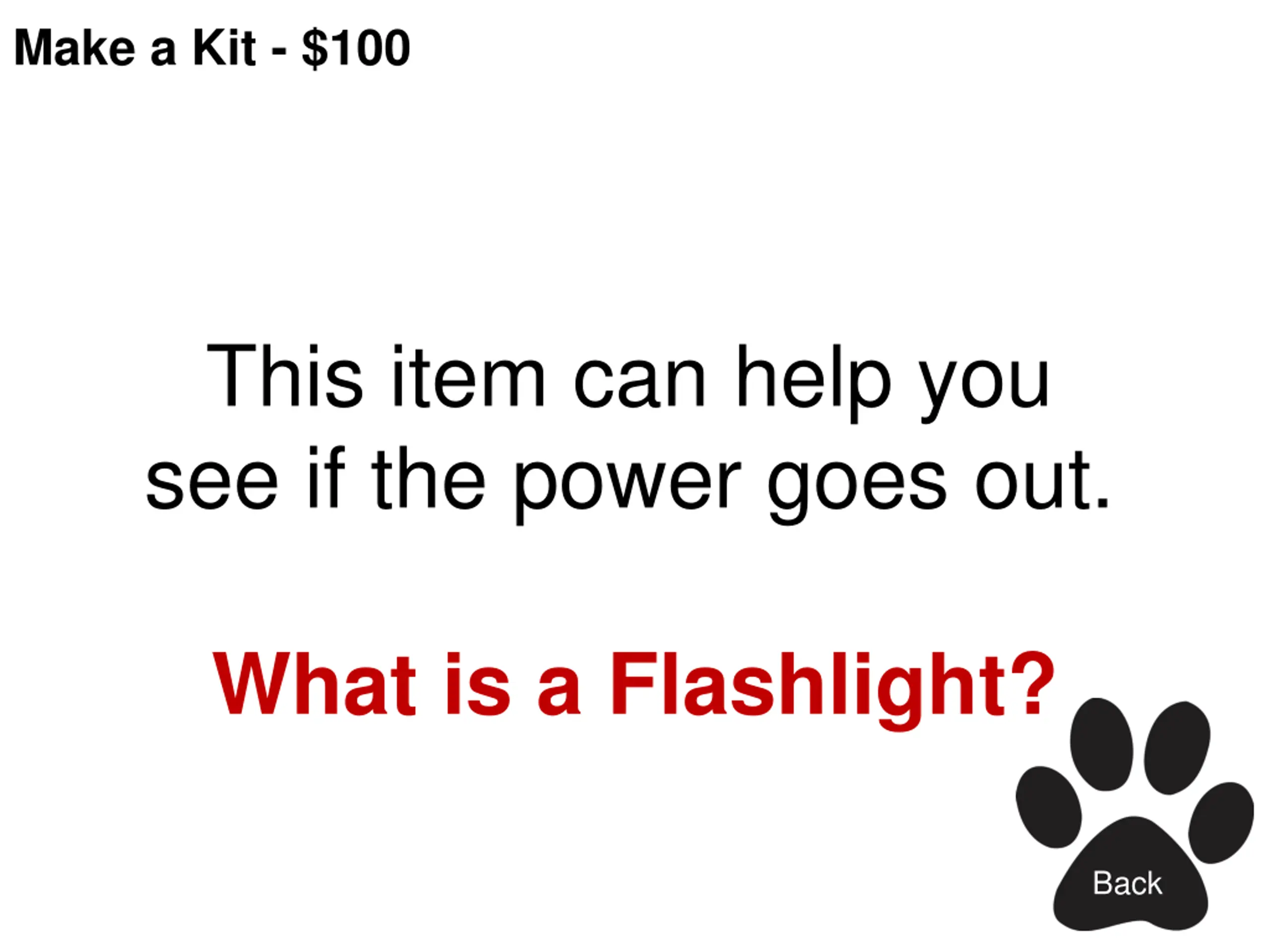 Make a Kit - $100 This item can help you see if the power goes out. What is a Flashlight? Back Back